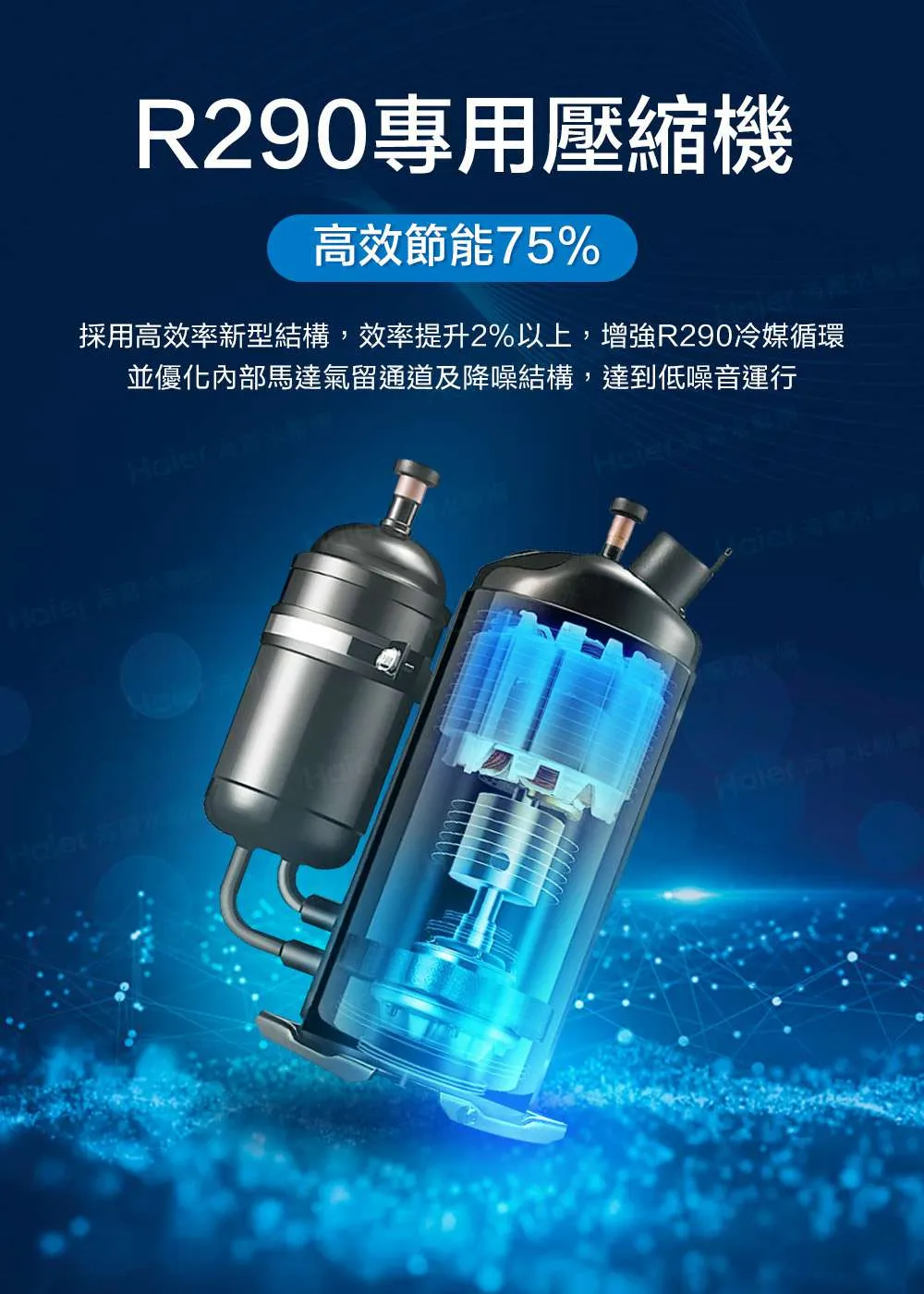 • 新世代R290環保冷媒:對臭氧層無害的製冷劑,節能環保