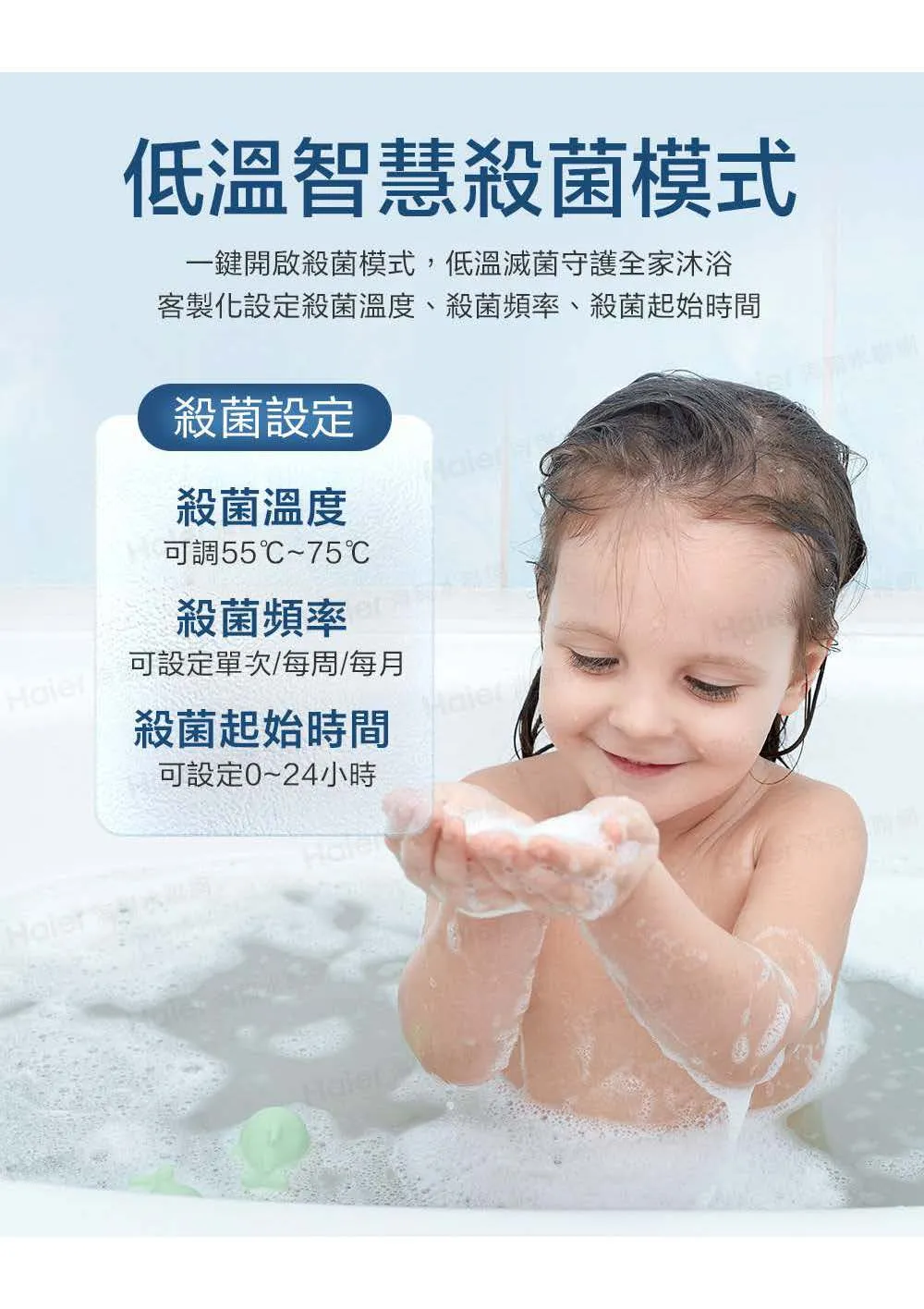 • 低溫智慧殺菌模式:客製化低溫殺菌設定,守護全家沐浴