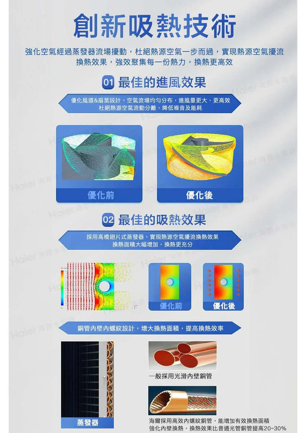• 自凍潔科技:自動開啟自清潔功能,提高節能、換熱效率