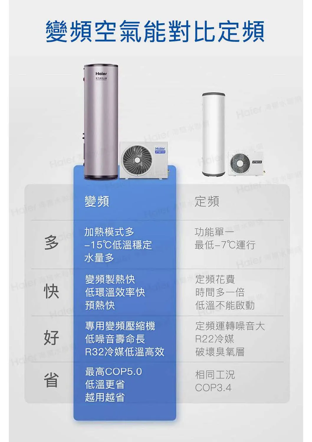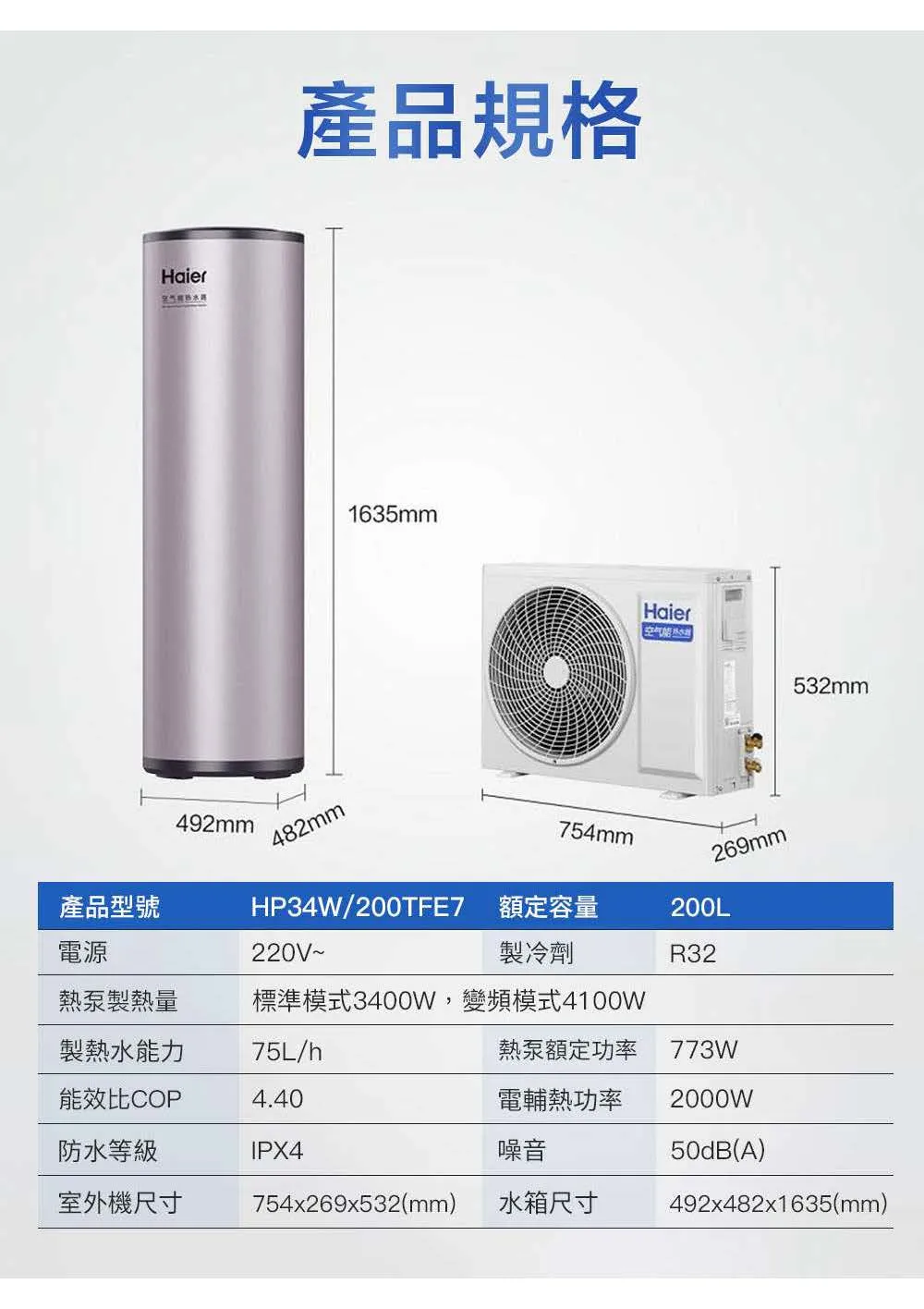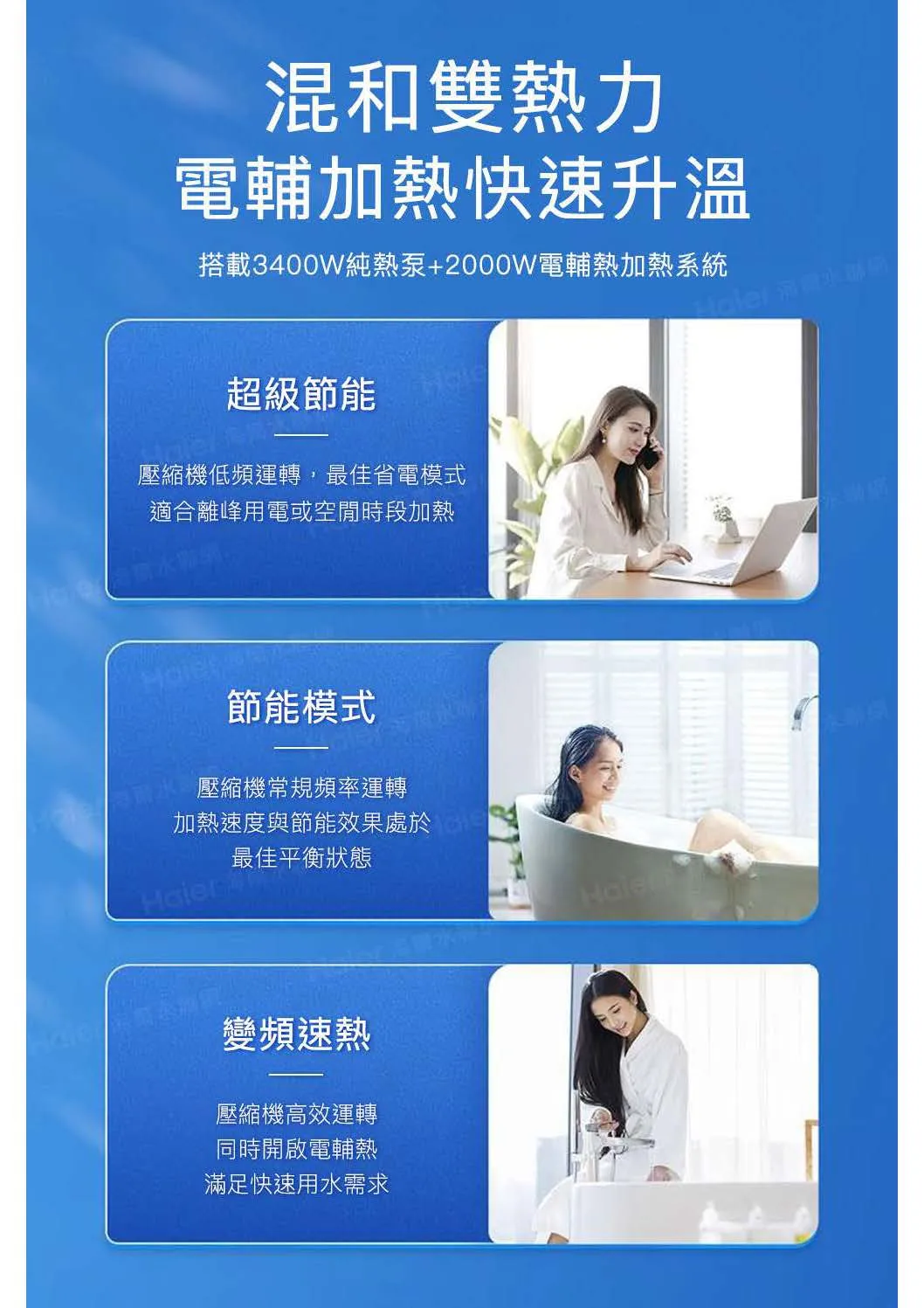 • 混和雙熱力系統:電熱輔助與熱泵雙熱力,節省等待時間