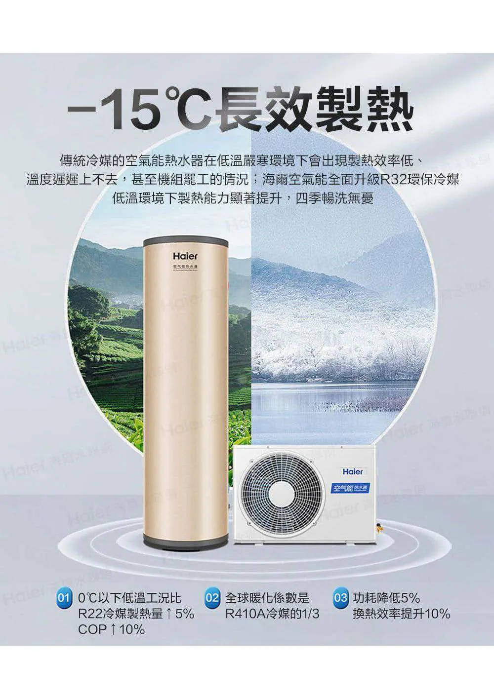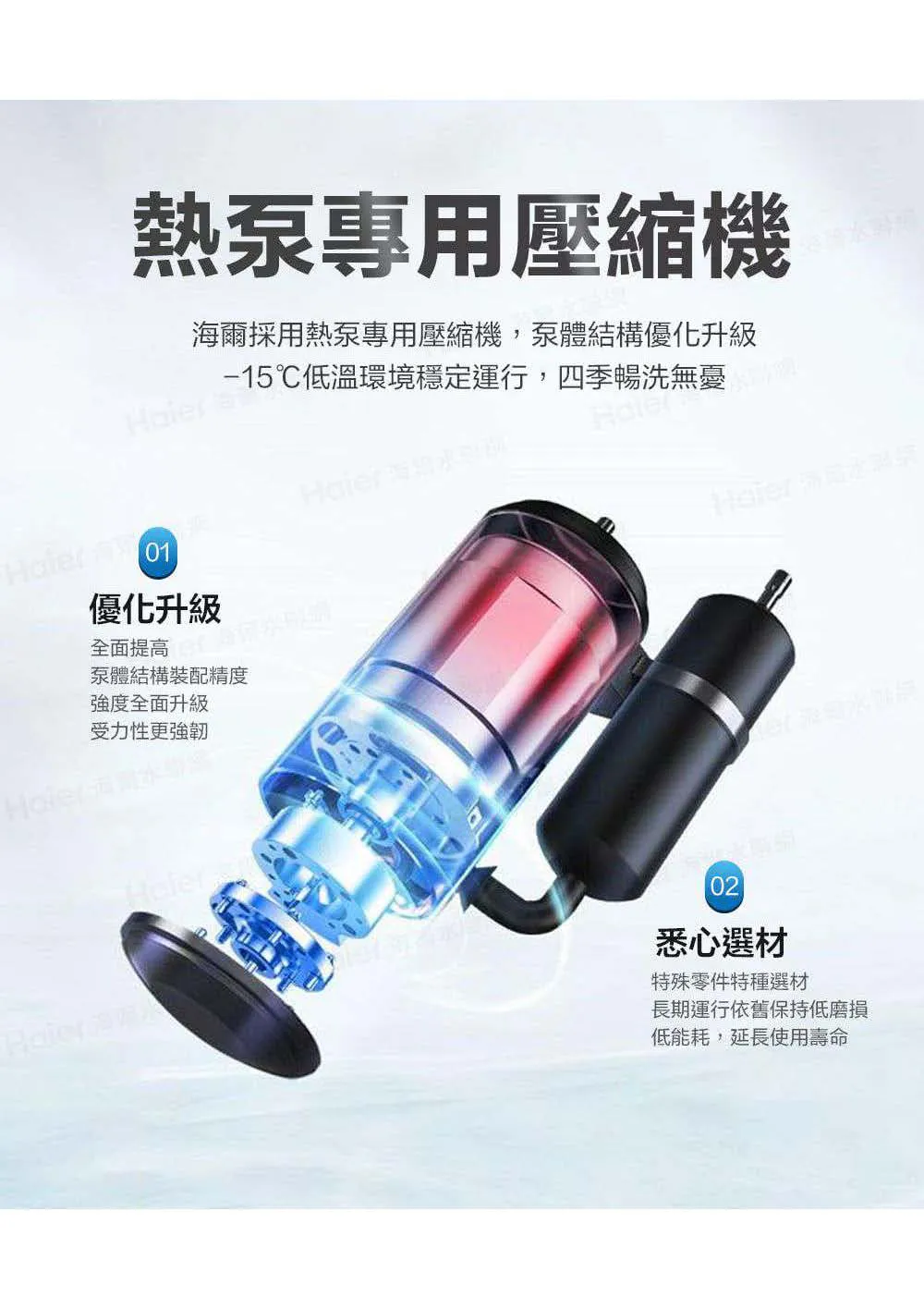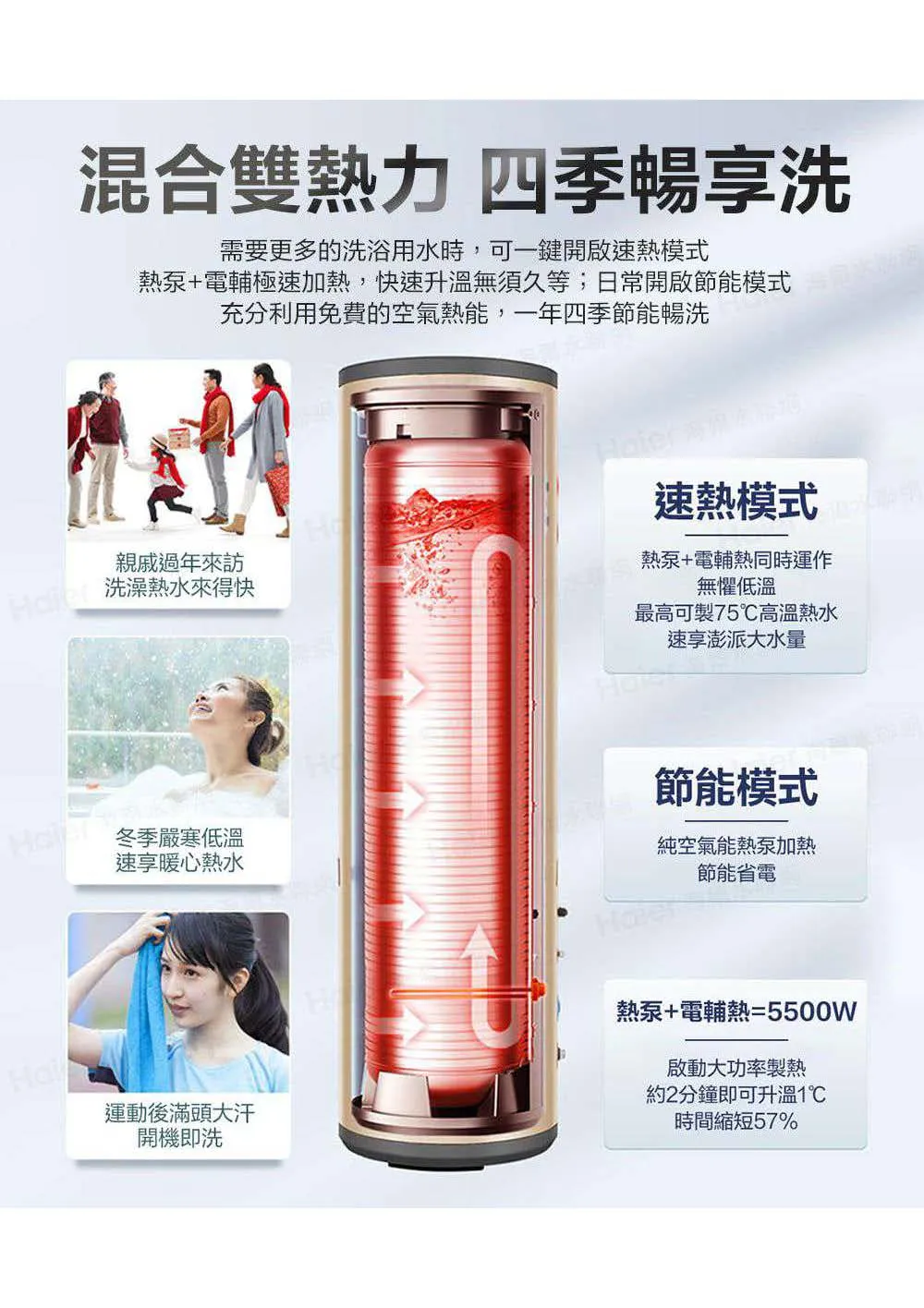• 混和雙熱力系統:電熱輔助與熱泵雙熱力,節省等待時間