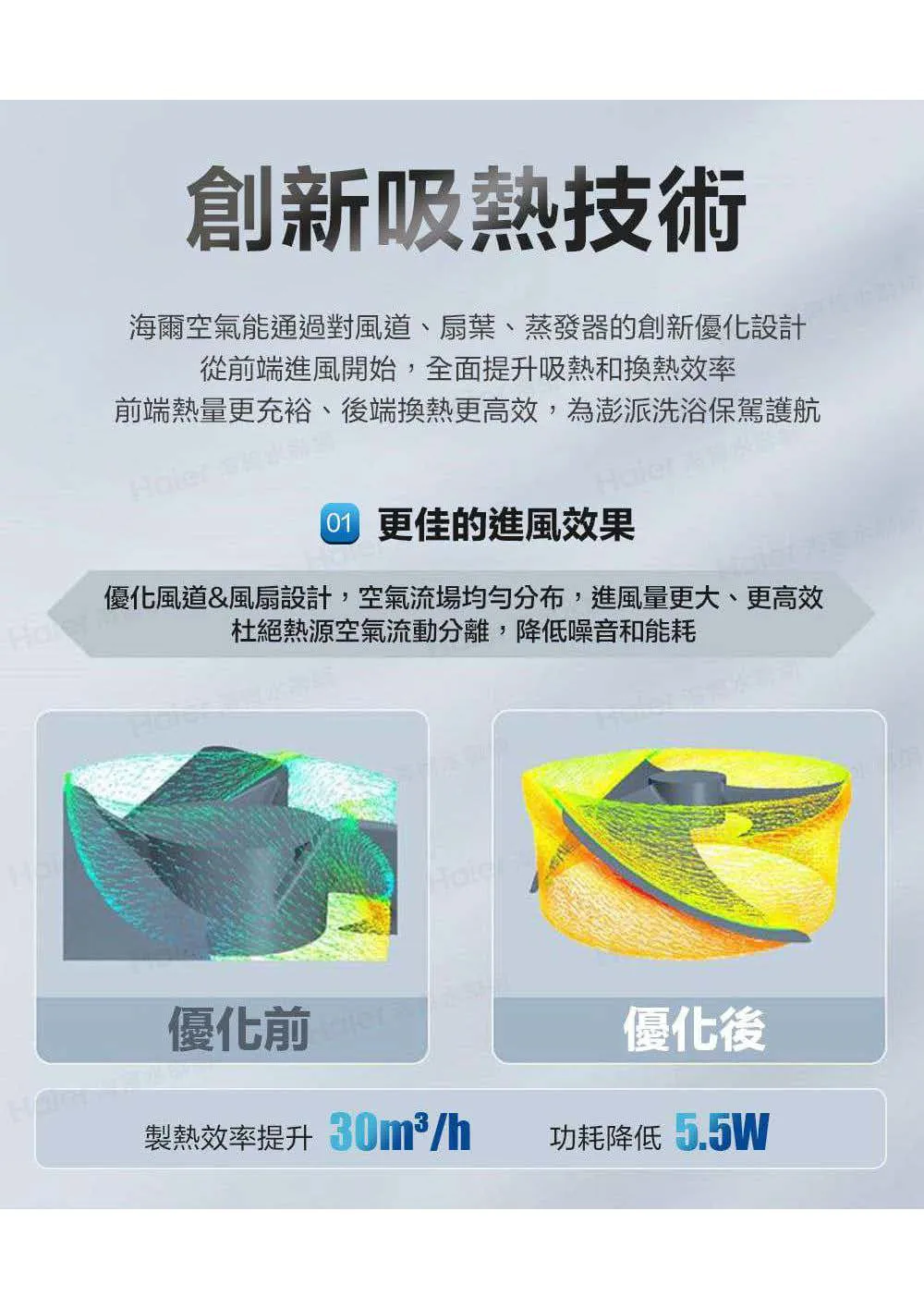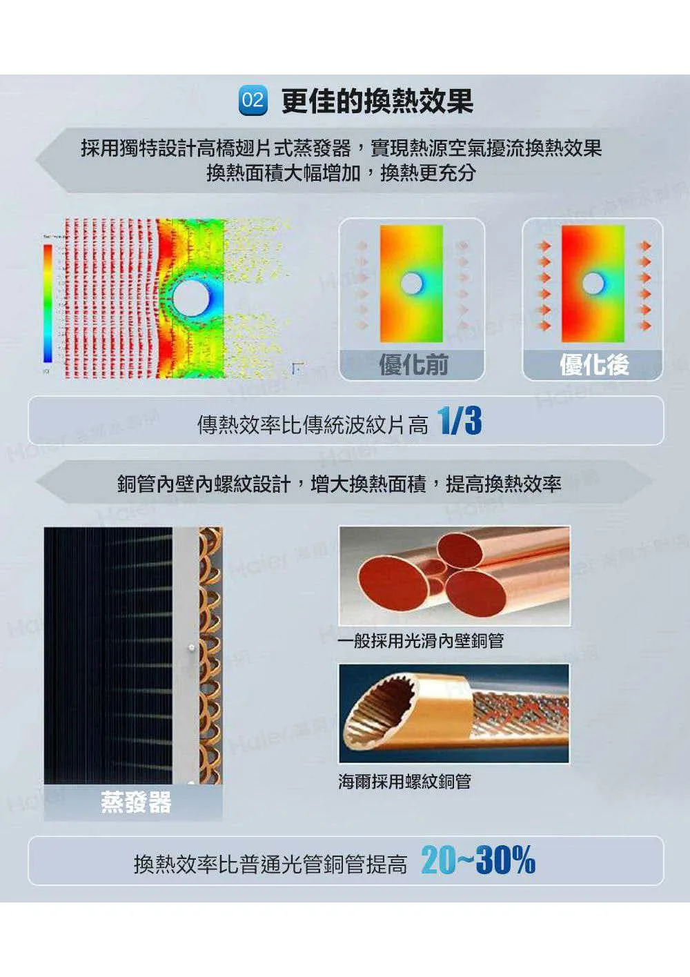 • 自凍潔科技:自動開啟自清潔功能,提高節能、換熱效率