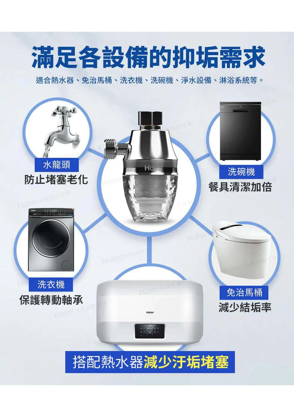 • 滿足各設備抑垢需求:適用熱水器、免治馬桶、洗衣機、洗碗機等,大大增加用水家電使用壽命