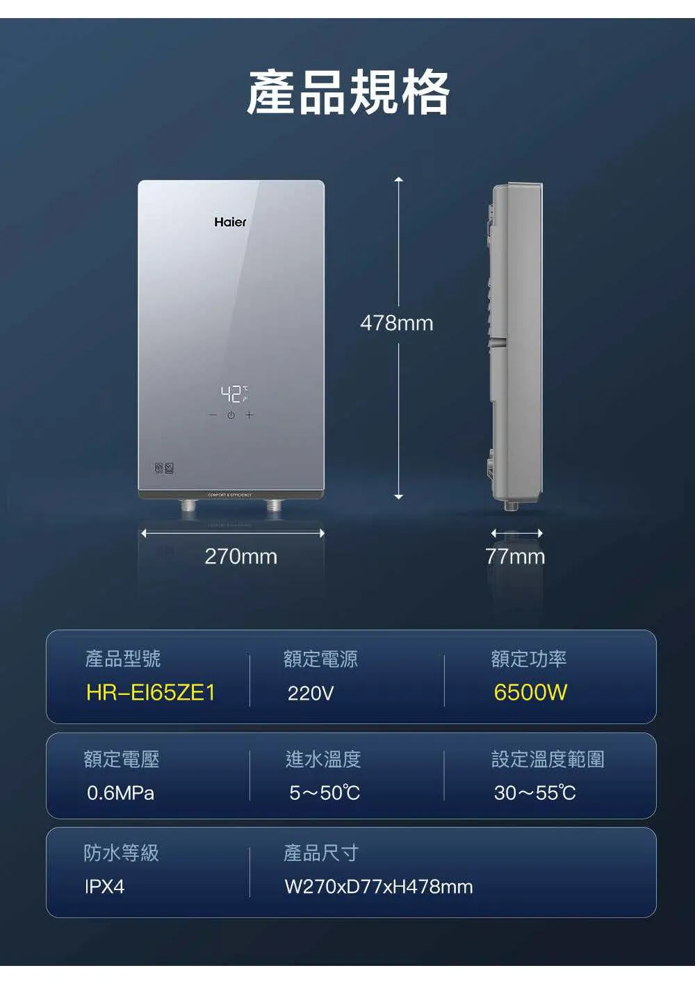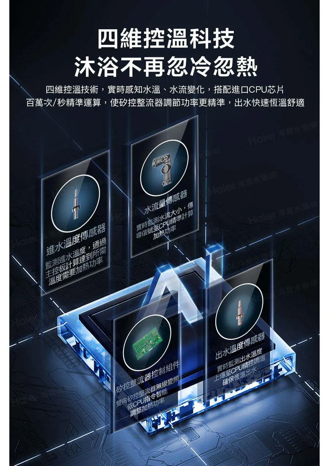 • 四維控溫科技:精準計算調整加熱功率,快速恆溫出水