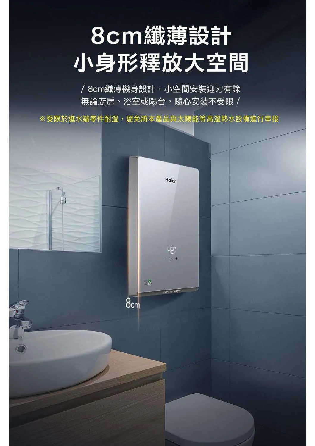 • 纖薄機身:升級無內膽設計,安裝省空間