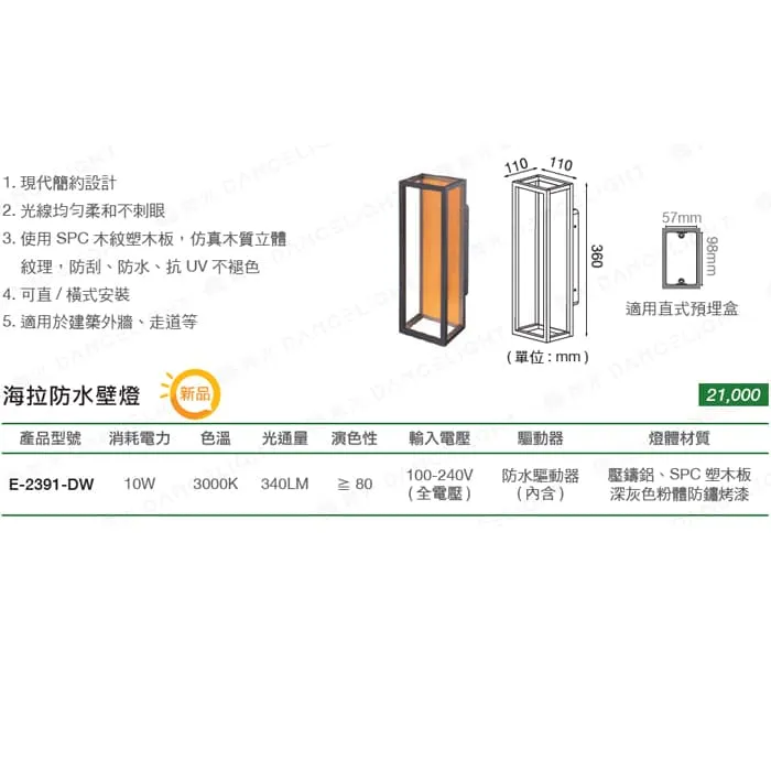 商品舞光 LED 11W 海薇防水壁燈 走道燈 戶外壁燈 庭園燈 IP66戶外防塵防水壁燈 E-2360