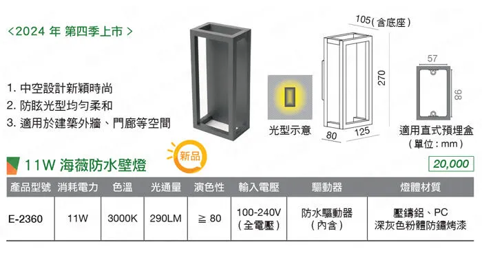 商品舞光 LED 20W 艾絲防水壁燈 走道燈 戶外壁燈 庭園燈 IP66防塵防水 E-2357 E-2358