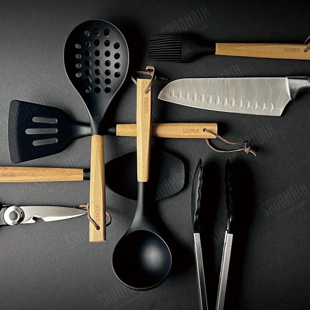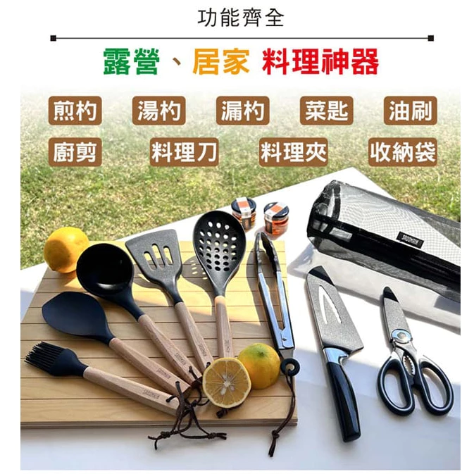 🔹【功能齊全】--煎杓/湯杓/漏杓/菜匙/料理夾/油刷/料理刀/廚剪