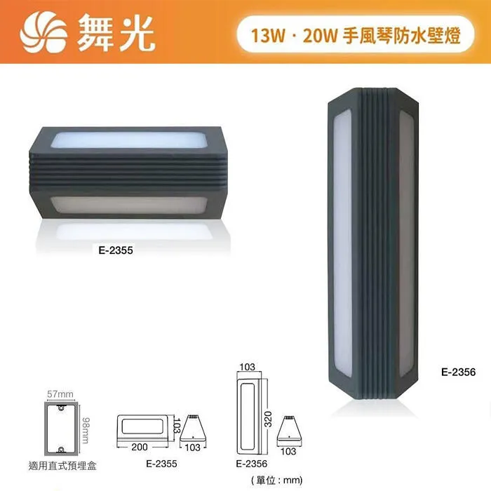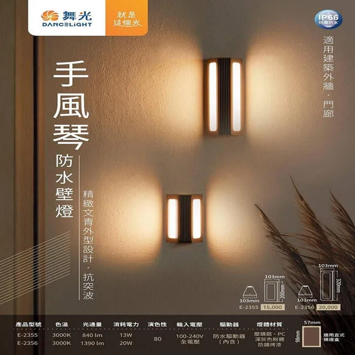 商品舞光 LED 9W 奧莉薇戶外防水壁燈 IP66 防塵防水 上下打光防眩光型 E-2380