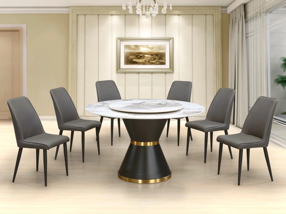 此餐桌為岩板面材質 底座顏色為黑色鐵腳 桌腳材質為鐵件
