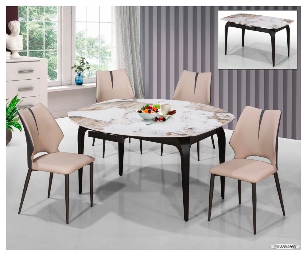此餐桌為岩板材質 桌角為鐵件 堅固耐用 功能型 桌面側邊可以開合 適合小家庭 偶爾有朋友聚會會用到大桌面的情況
