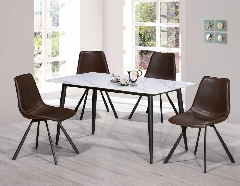 此餐桌為岩板材質 桌角為鐵件 堅固耐用