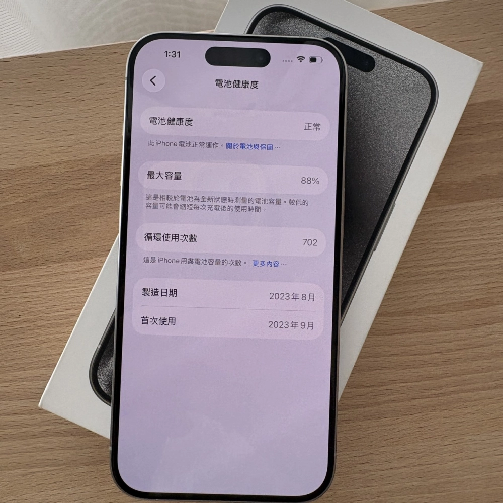 • 台中 Apple iPhone 15 Pro 256G 白色 一手機女用機 電池88 功能正常!