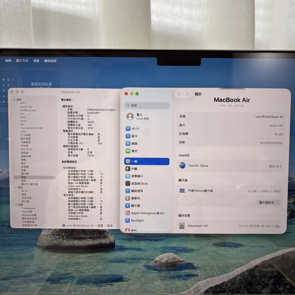 • 台中 保固2027/2 Apple Macbook Air M4 15吋 16G 256G 星光色 電池100 循環次數9!超新!附購買證明!