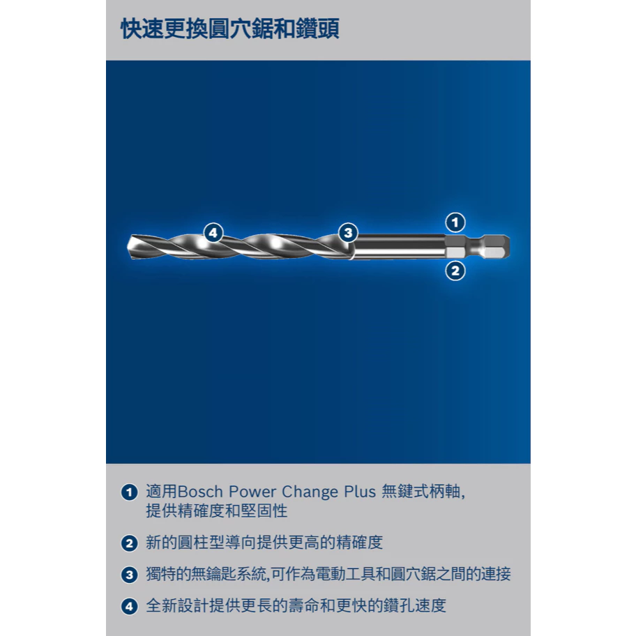 ●快速更換圓穴鋸和鑽頭