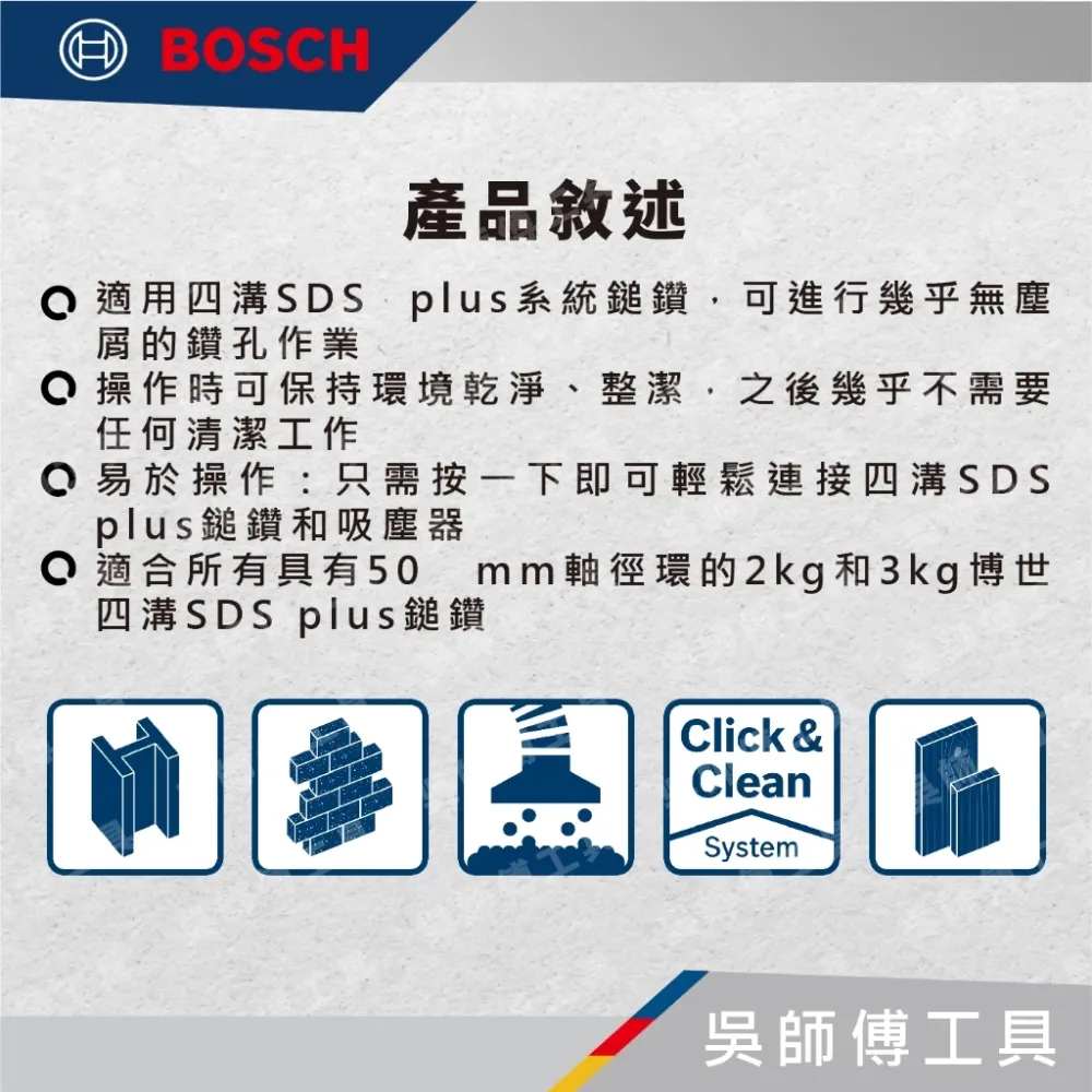 ●適合所有具有50 mm軸徑環的2kg和3kg博世四溝SDS plus鎚鑽