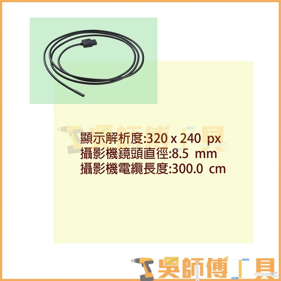 300厘米長的攝像頭電纜,用於檢查較長的物體,如管道和電纜
