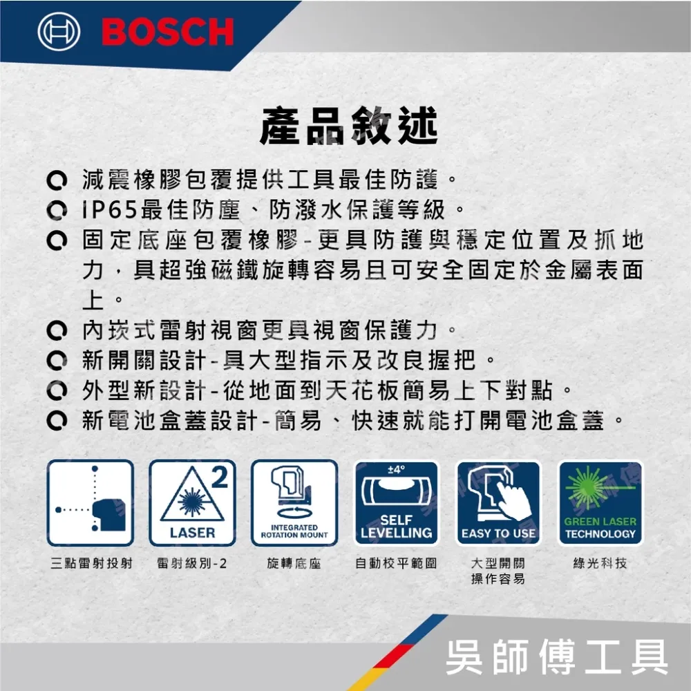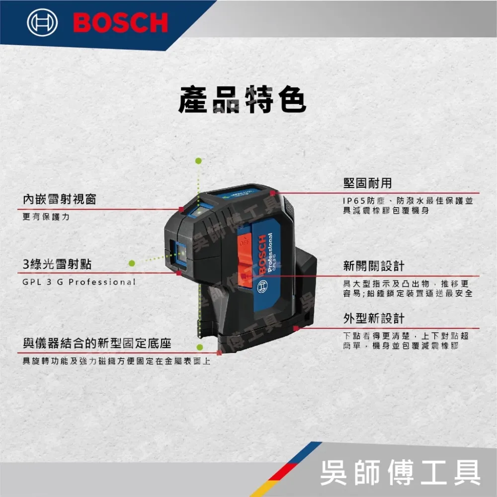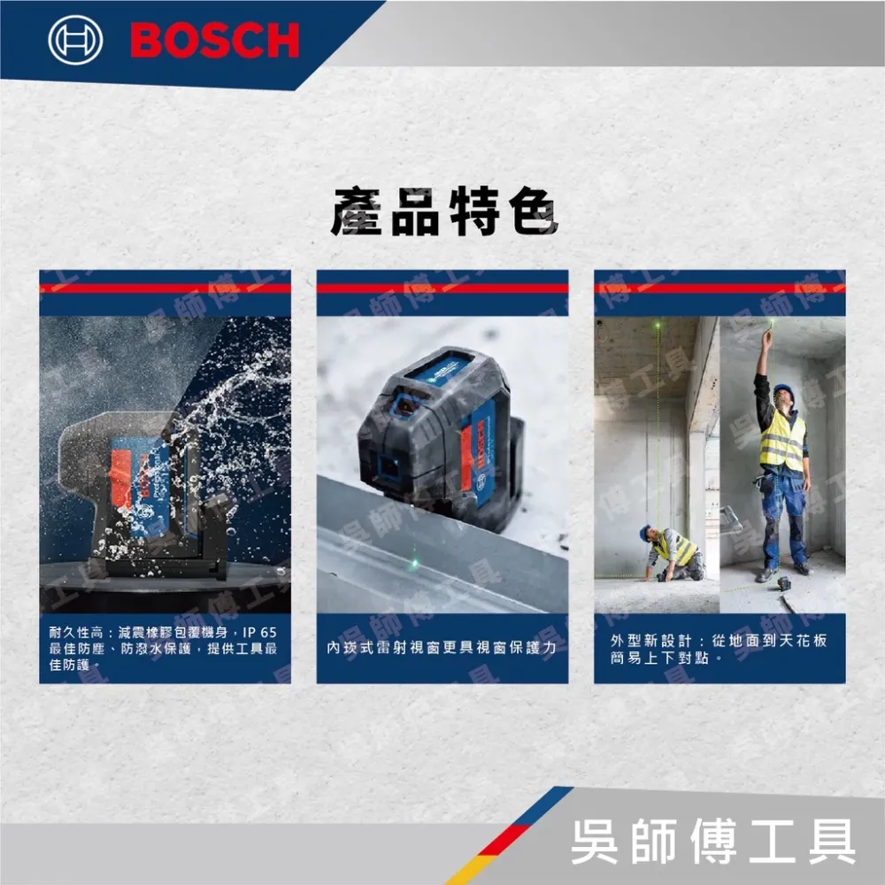 ●GPL 3 G Professional 3點雷射堅固又小巧的設計非常適合隔間作業。搭載的綠色雷射點比紅色點的能見度增加四倍。