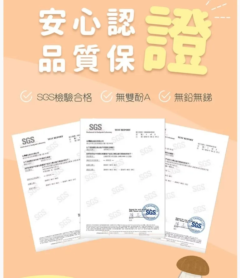 ● 經SGS檢驗合格,無雙酚A、塑化劑