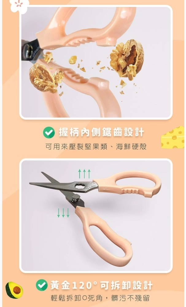 ● 日本進口420不鏽鋼鋼材,極緻兩段刃刀面,食物好剪不易沾黏!