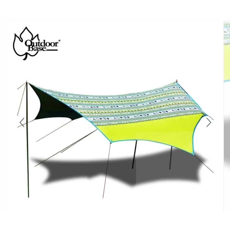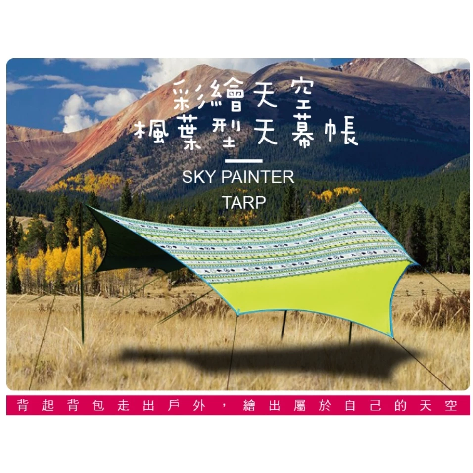 【綠色工場】OutdoorBase 彩繪天空 附營柱x2支 楓葉型天幕帳 銀膠工藝 客廳帳 炊事帳 露營 戶外 野營