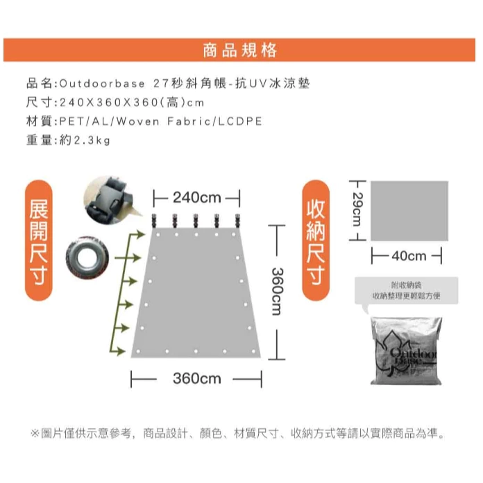 🔸品名: Outdoorbase 27秒斜角帳-抗UV冰涼墊-21669