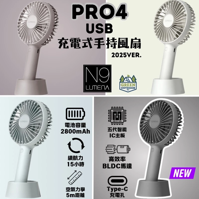 LUMENA PRO4 USB充電式手持風扇【綠色工場】 N9 迷你扇 手持桌立兩用風扇 充電風扇 手持小風扇 露營風扇
