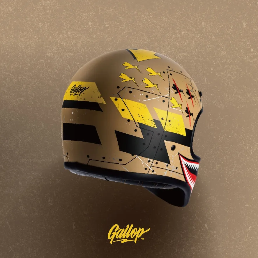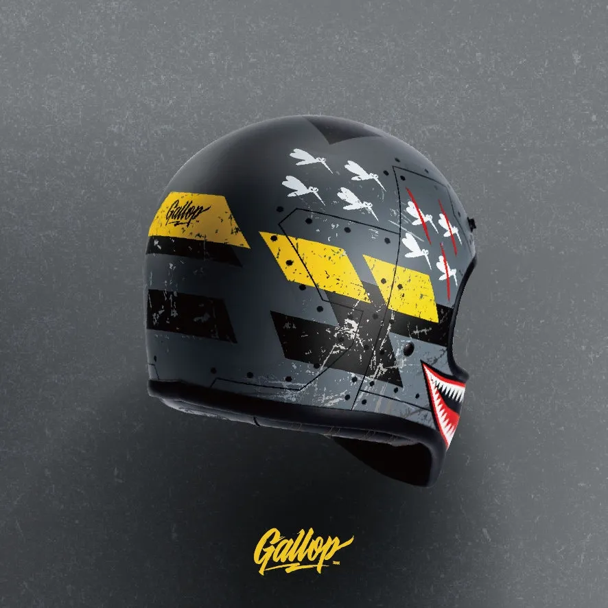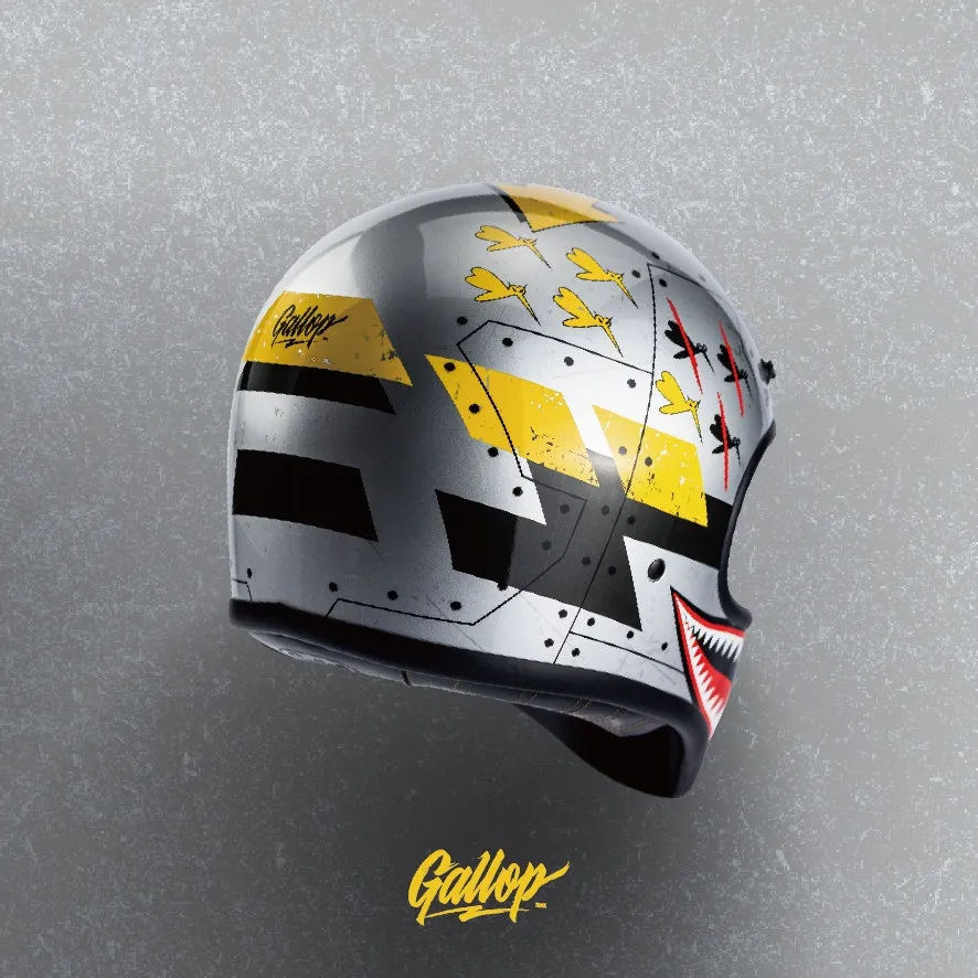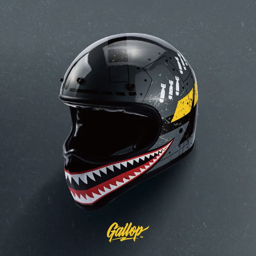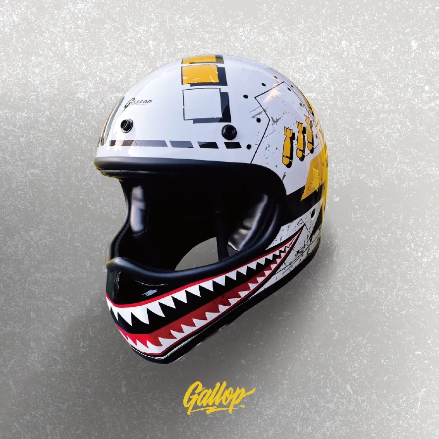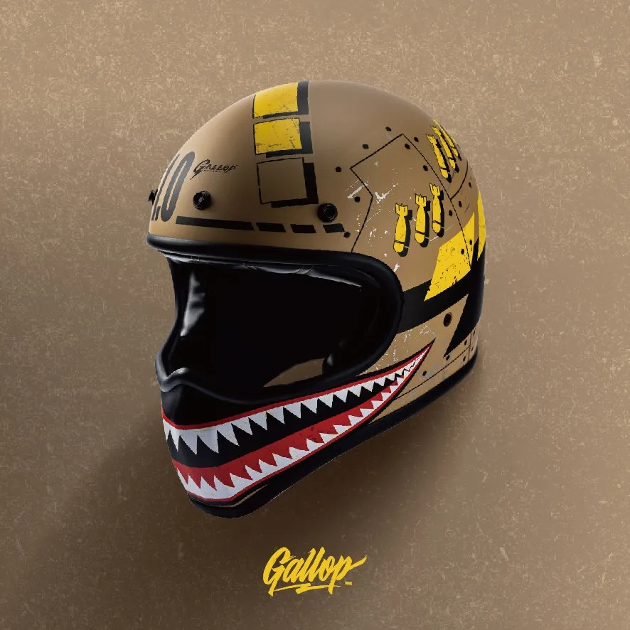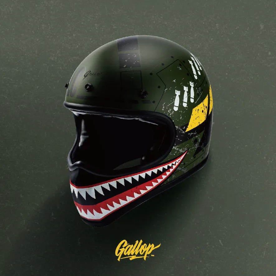 /設計理念/ 以飛虎隊戰鬥機的經典塗裝為設計靈感,經過戰鬥損傷和舊化的處理,呈現出獨一無二的霸氣外觀。這款山車帽不僅讓你安全騎行,更是一種酷炫的潮流配件,讓你成為街頭焦點。其輕巧耐用的設計,讓你在享受風景的同時,不必擔心安全問題。王牌不僅是一款安全帽,更是一種態度的展現。無論你是騎士還是潮人,這款王牌都能帶給你一份與眾不同的自信。現在就來擁有這款經典而又帥氣的安全帽,成為騎士與潮人中的王牌! - /設計寓意/ 這款設計以經典的飛虎隊鯊魚嘴元素為靈感,將飛行員在飛機上擊落敵機的表示成績,趣味地轉化為蚊子的形象。蚊子在夏季傍晚時常讓騎士巡航倍感困擾,碰撞時的聲響也如同彈著的炸彈和子彈轟炸一般,營造出強烈的視覺與聽覺衝擊。 /M1特色/ M1山車帽風格具有硬派.剛毅.越野等設計元素 配戴上M1會有種不羈的灑脫感 對於GALLOP來說~這就是我們對於生活之中的一種堅持精神。 你~還在尋尋覓覓尋找真正可以代表自己內心的那種感覺嗎 /帽型設計/: Gallop特別主打「亞洲投形適合帽體」臉頰兩側微微內縮,有助於高速騎乘的穩定度,視覺上更加俐落; 小帽體也更適合亞洲人的頭型與身形比例. /安全舒適品質/: CNS,安全認證,雙D釦具確保安全帽與頭部完美貼合、 安全第一;帽襯内裏更使用日本高品質細緻絨毛,材質親膚感良好、可拆洗以確保配戴衛生。 /烤漆品質/: 每款顏色皆經過精細手工反覆調製,色色飽和復古、細緻珠光粉末在光線下呈現豐富多層次樣貌, Gallop不僅品質舒適出色、對於色彩的敏銳度更每每讓人驚艷!