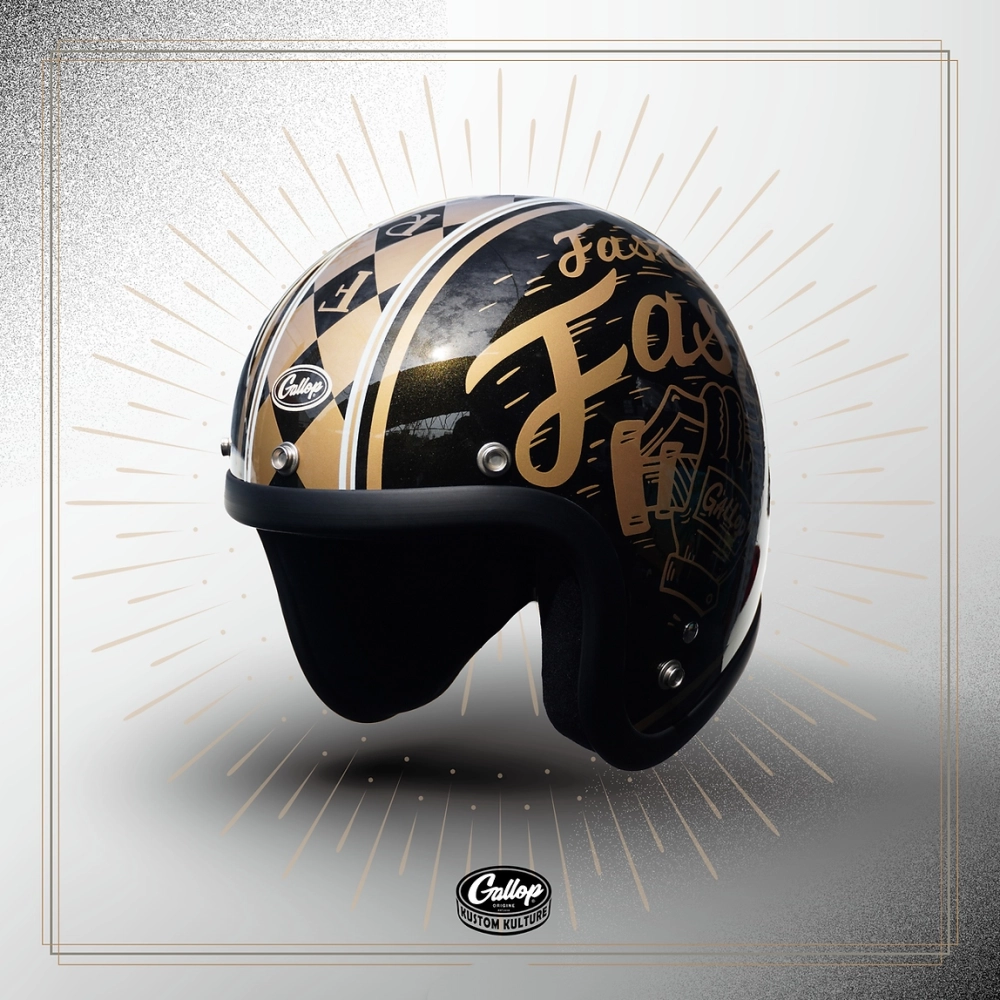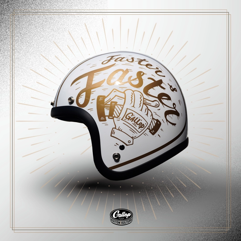 GALLOP Freedom Racer HELMET♦自由賽車手♦ GALLOP 再次與拉線藝術家Zeke Tai攜手合作推出這款彩繪安全帽. 一頂專為cafe racer文化而繪製的復古風格安全帽 帽體左邊彩繪文字Faster&Faster 快,更快,與右邊彩繪文字 cafe racer,表達了速度與自由的精神,以及cafe racer文化 拉線藝術家 @zeketai - 融合藝術,打造獨一無二的個人全新風格。