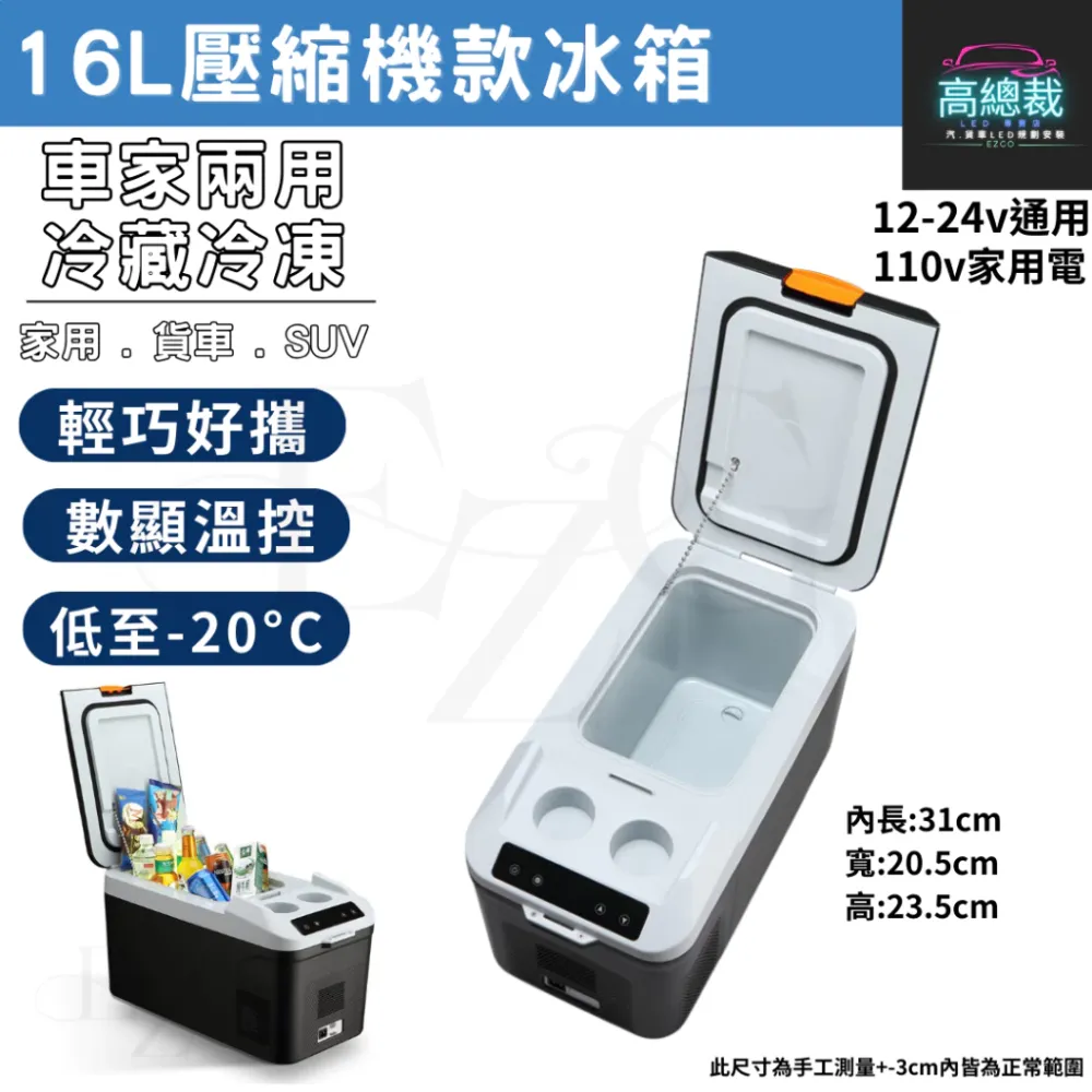 • 【高總裁LED 】台灣現貨 16L 壓縮機款製冷製冰冰箱 車用行動冰箱 12~24V 冷暖兩用 大容量 車充 家用