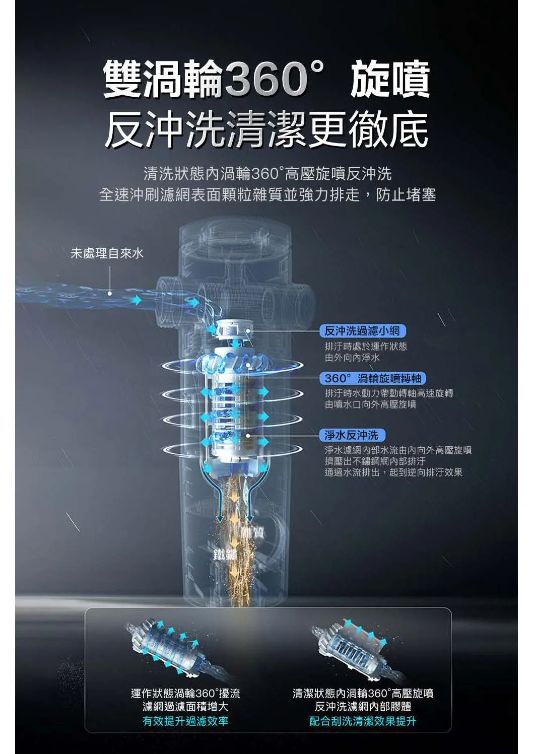 • 雙渦輪360°旋噴:渦輪高壓沖洗,全速帶走表面顆粒雜質