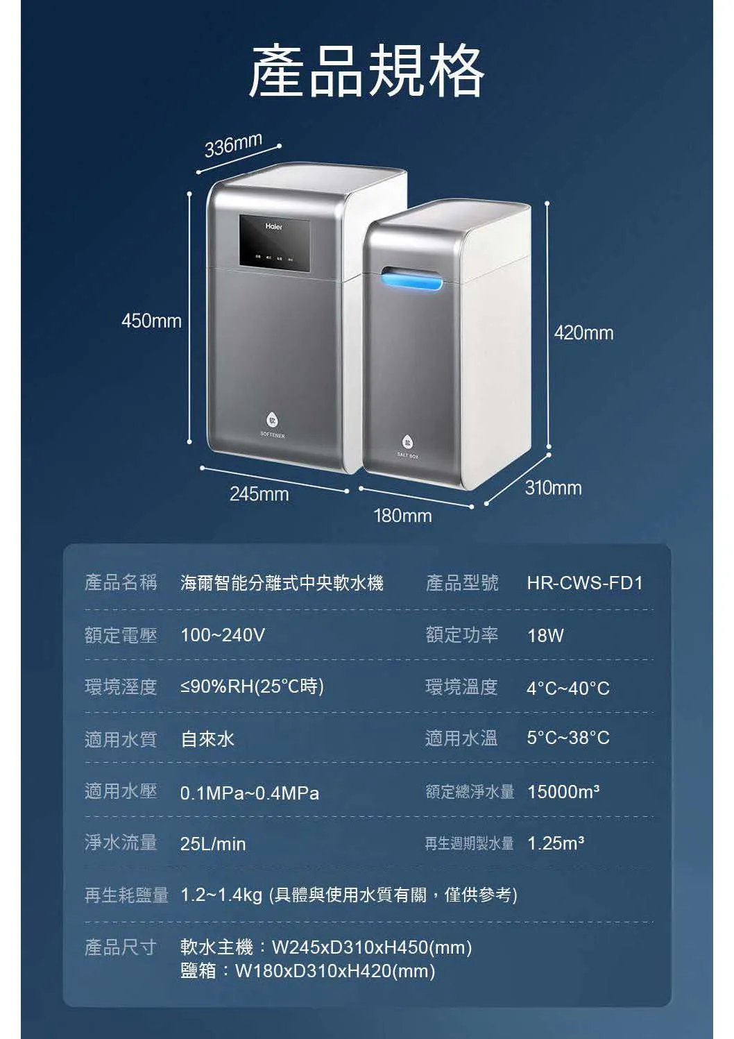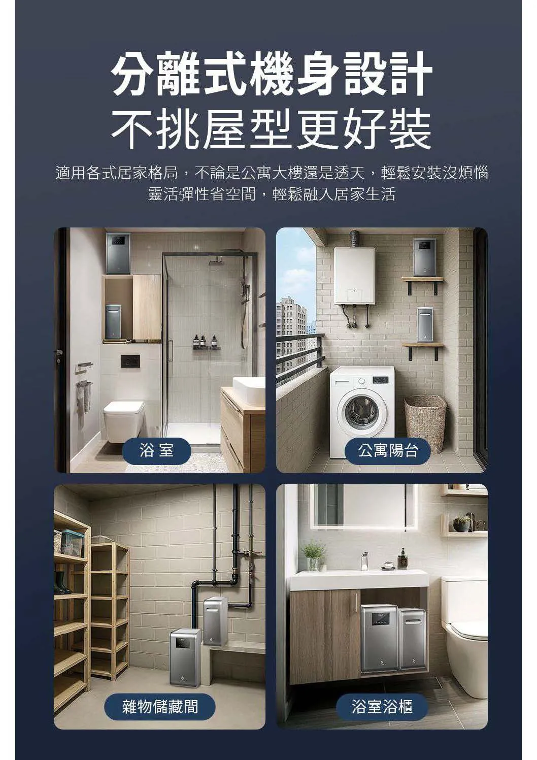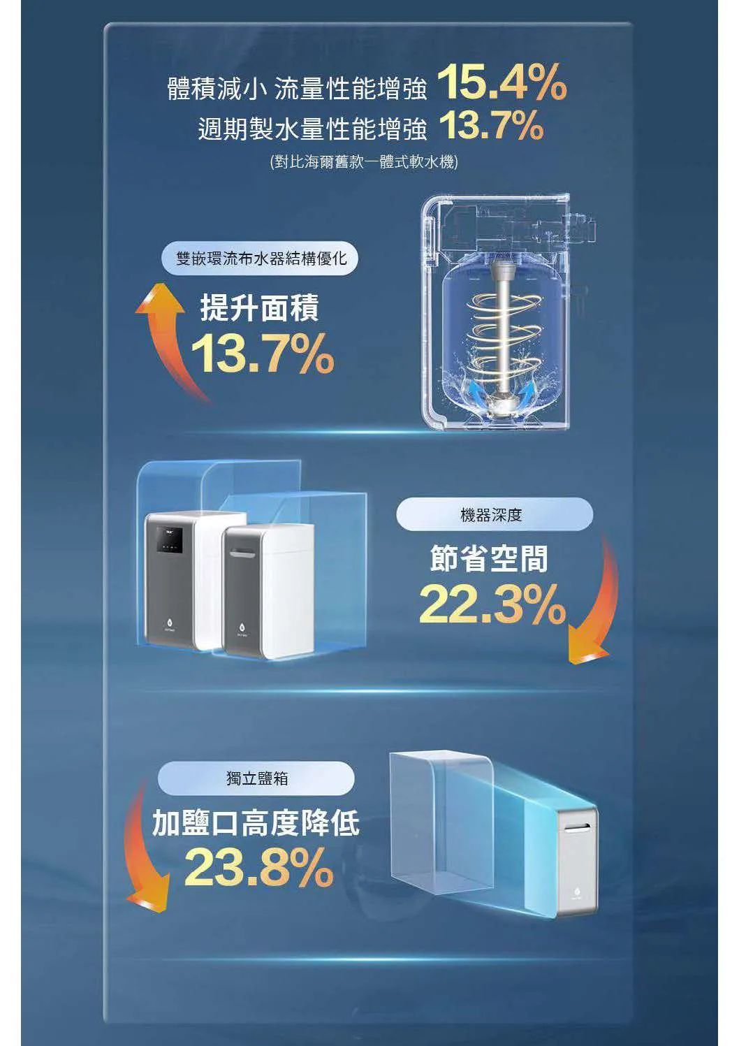 • 小巧體積分離式設計:週期製水量提升13.7%,小巧機身靈活安裝