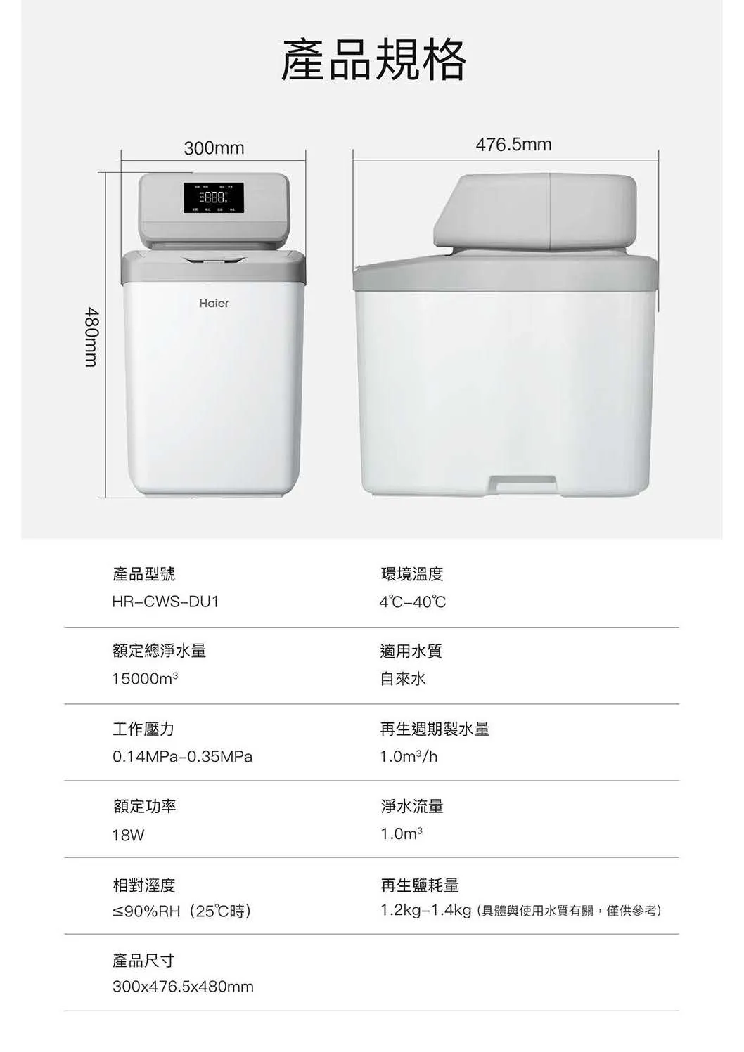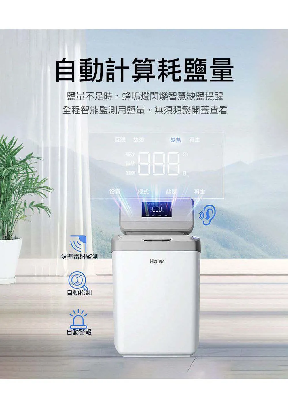 • 智慧加鹽提醒: 智慧顯示大螢幕,自動計算耗鹽量