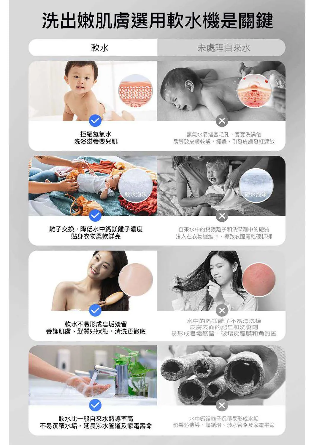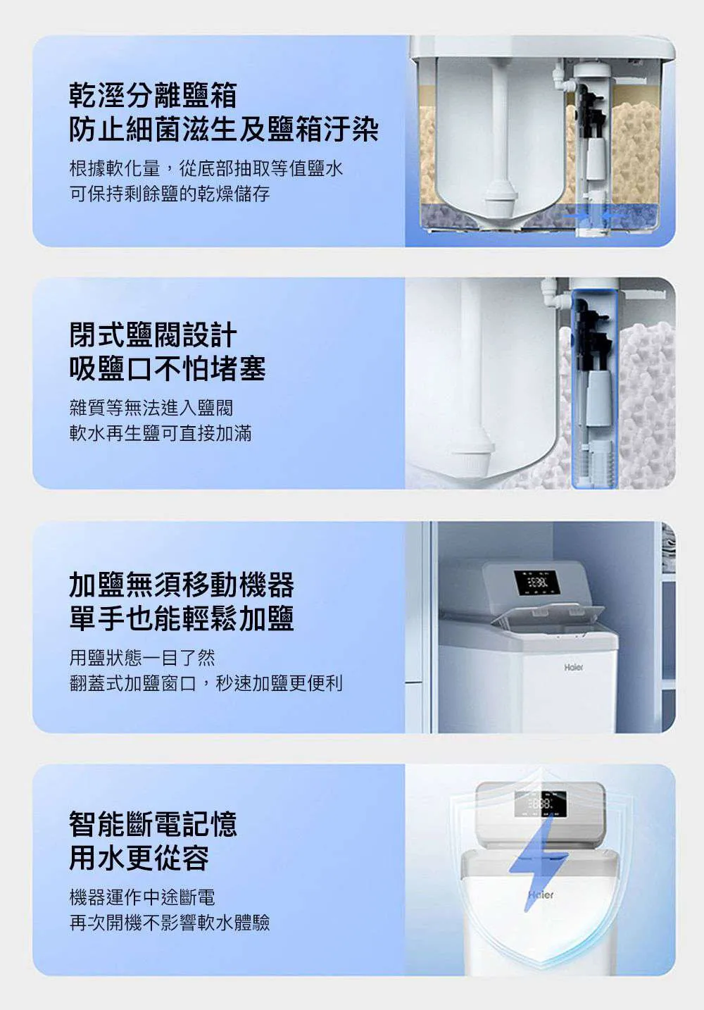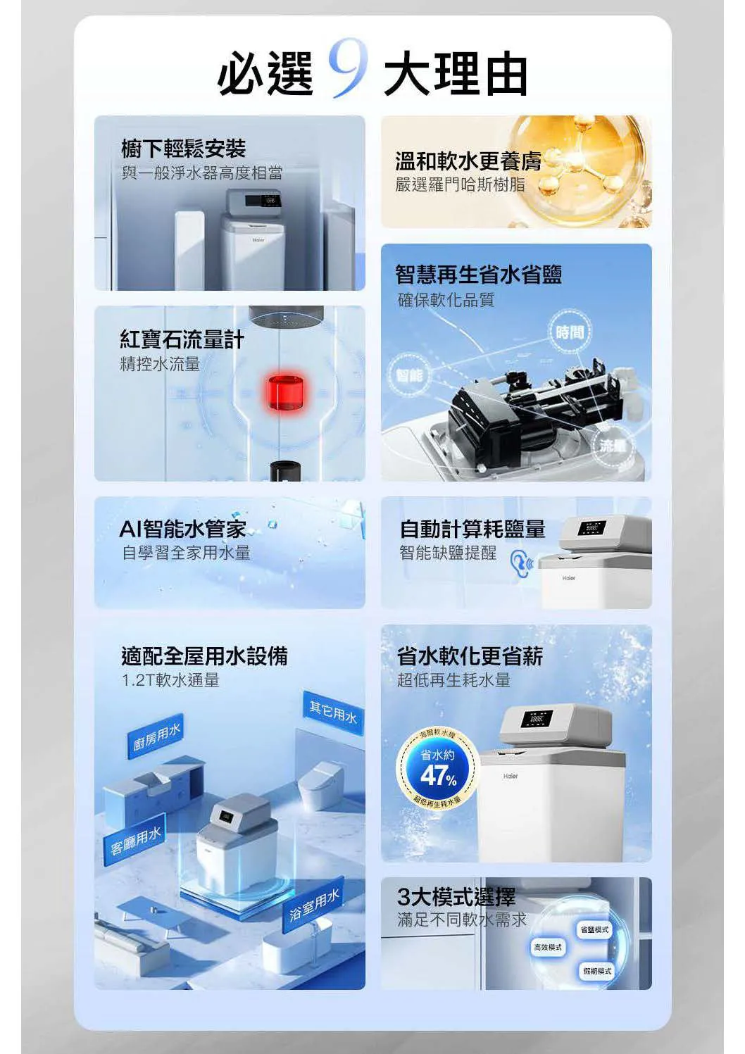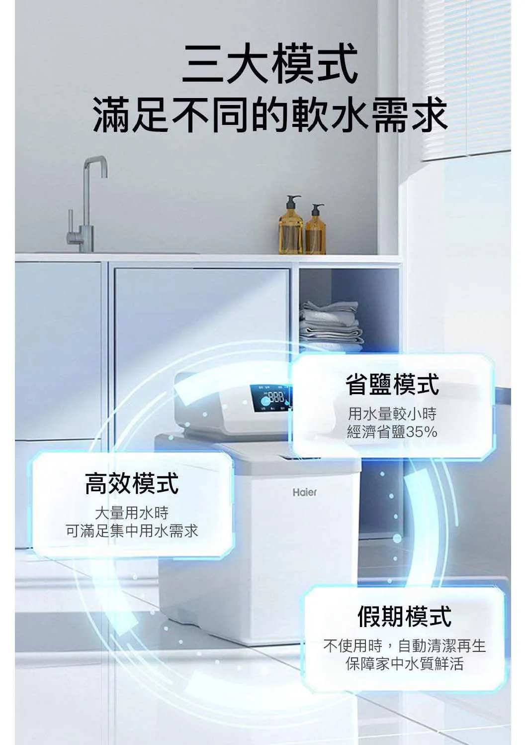 • 3大模式供選擇:滿足不同軟水需求