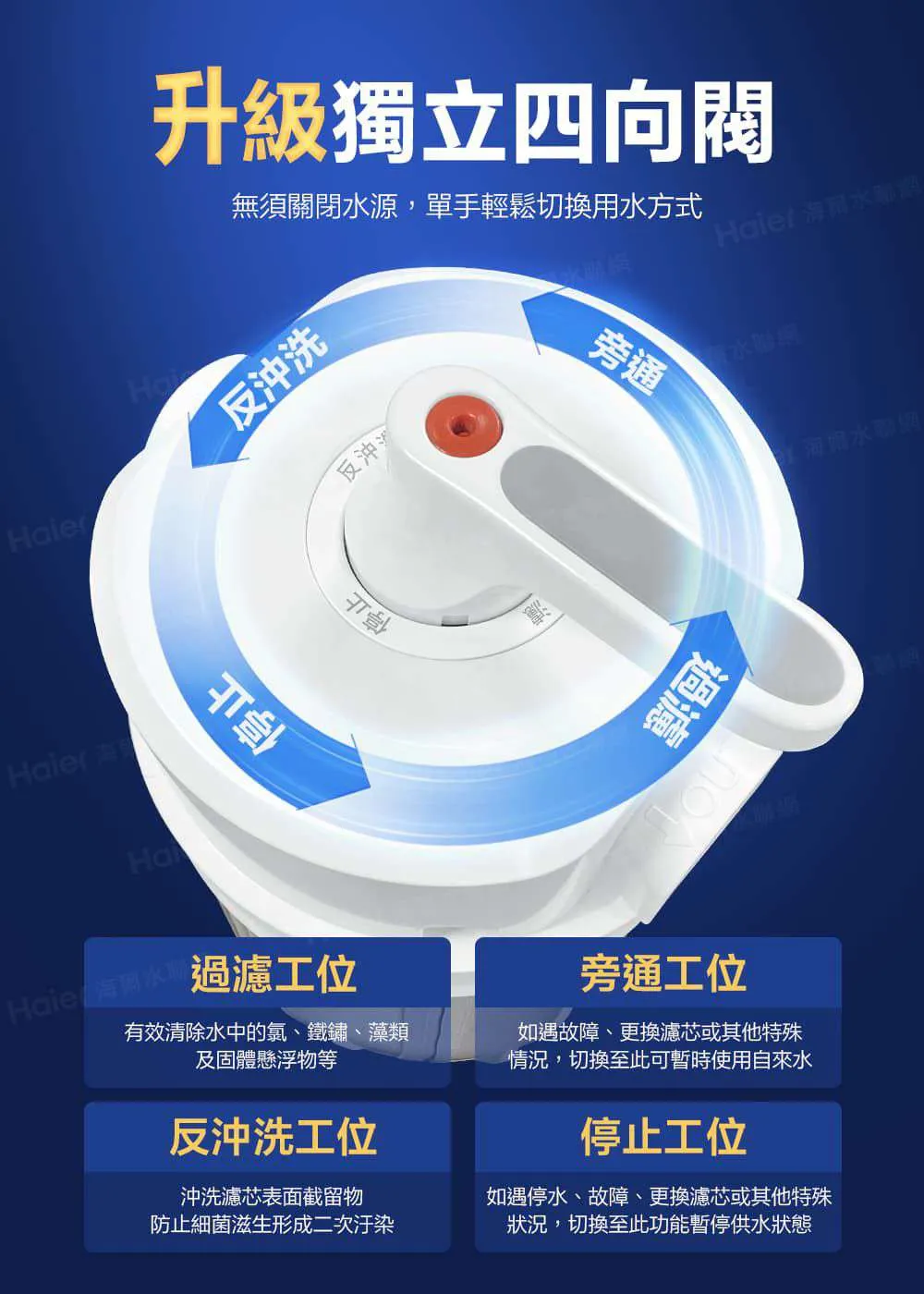 • 升級獨立四向閥:無須關水源,輕鬆切換用水方式