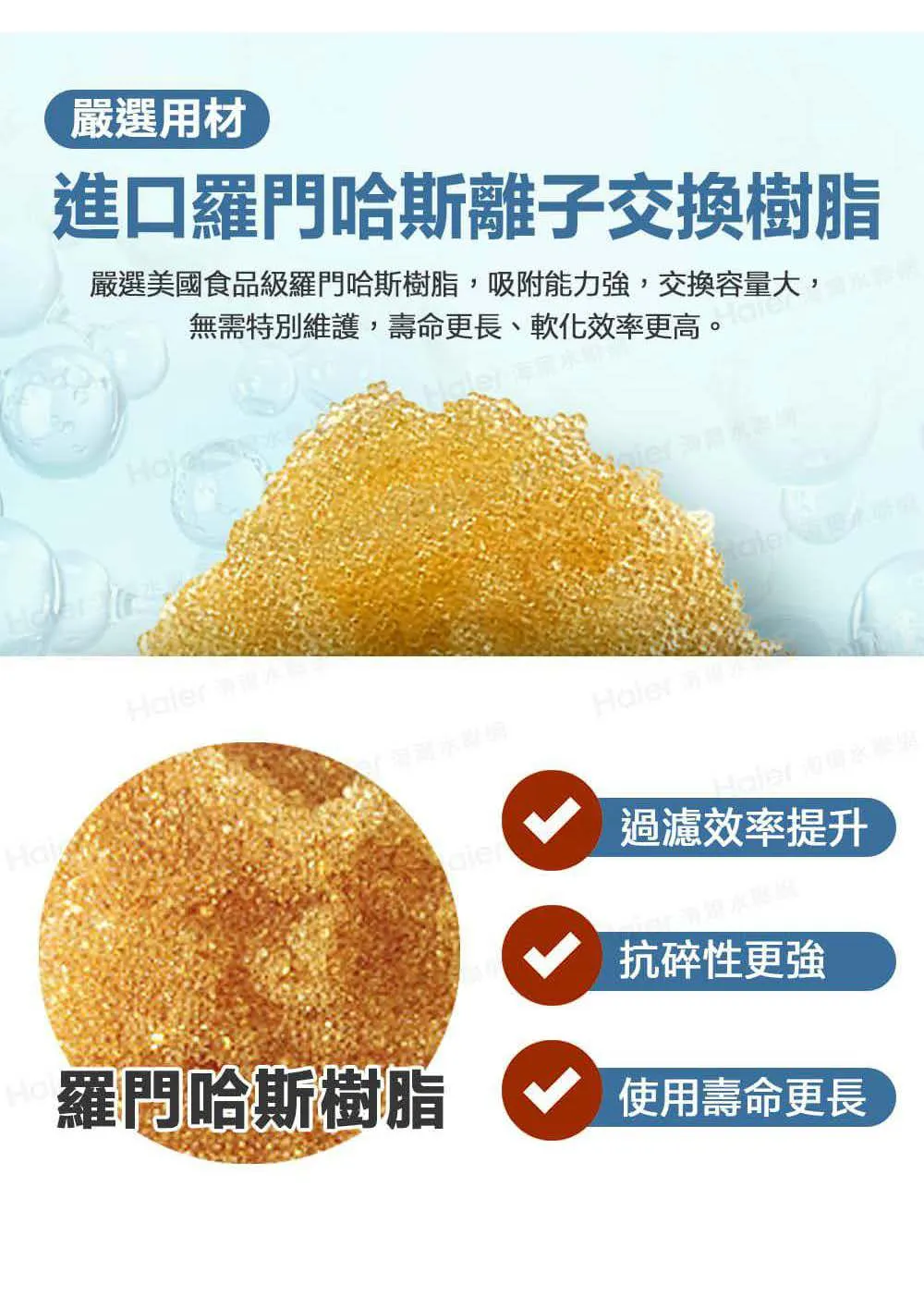 • 羅門哈斯離子交換樹脂:嚴選美國食品級材料,吸附能力強、軟化效率高