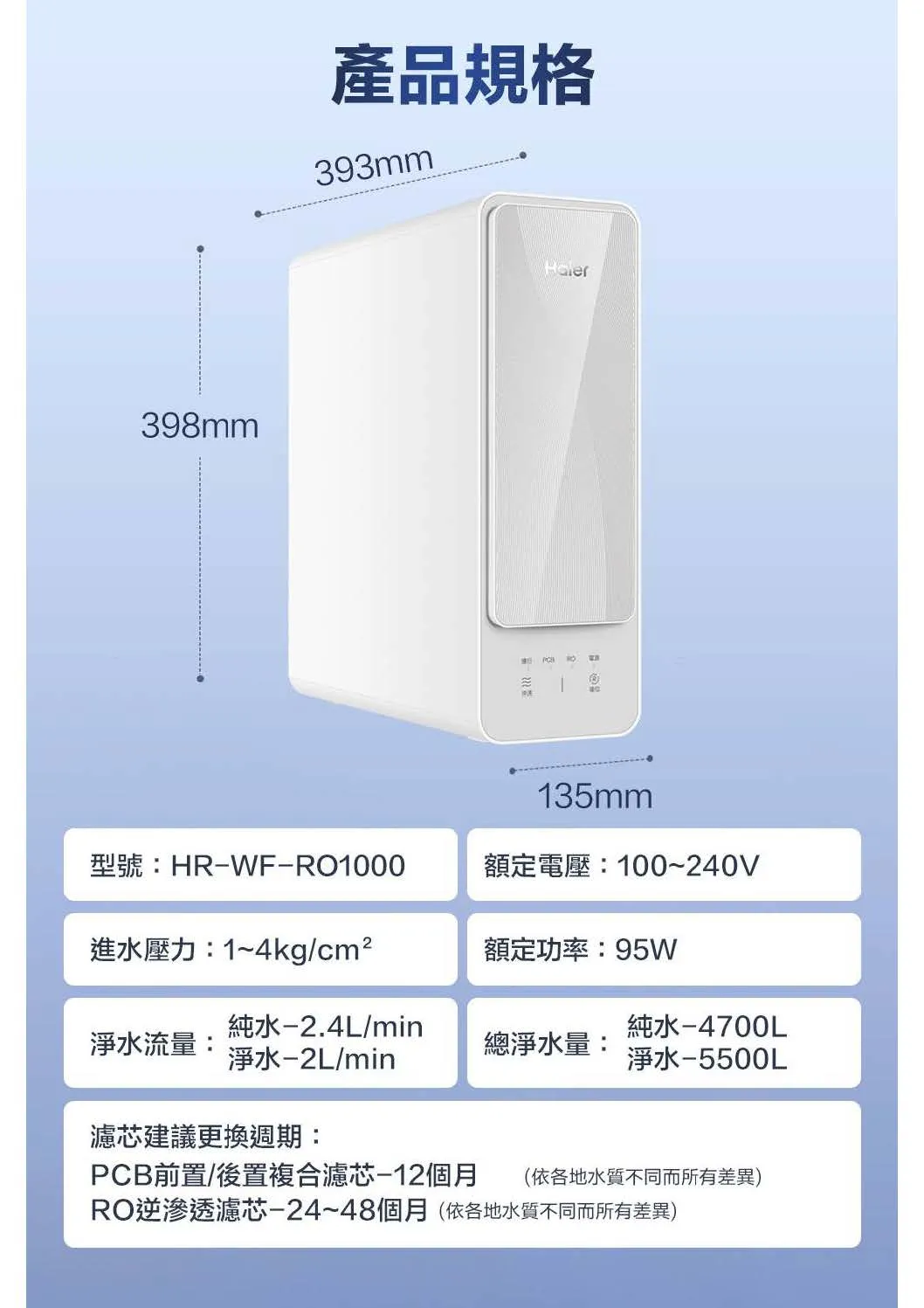 • 大出水量1000G:每分鐘出水2.4公升,超速給水不必等