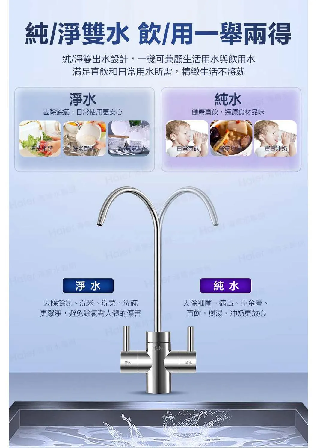 • 業界少見雙出水設計:生活用水與飲用水同時滿足