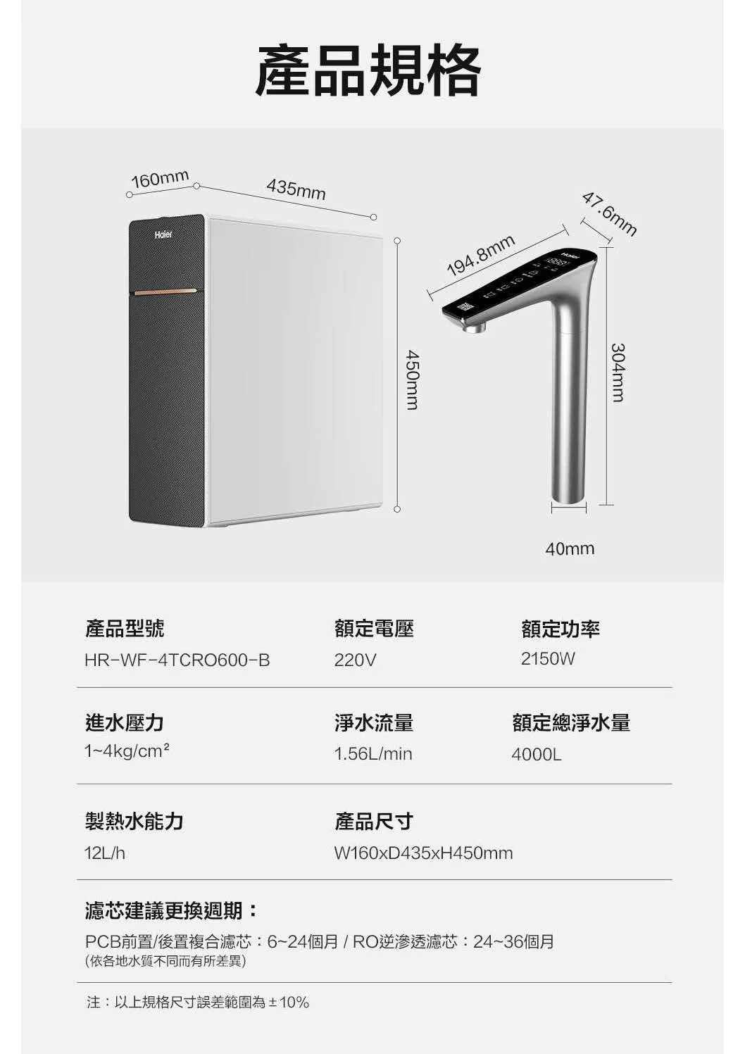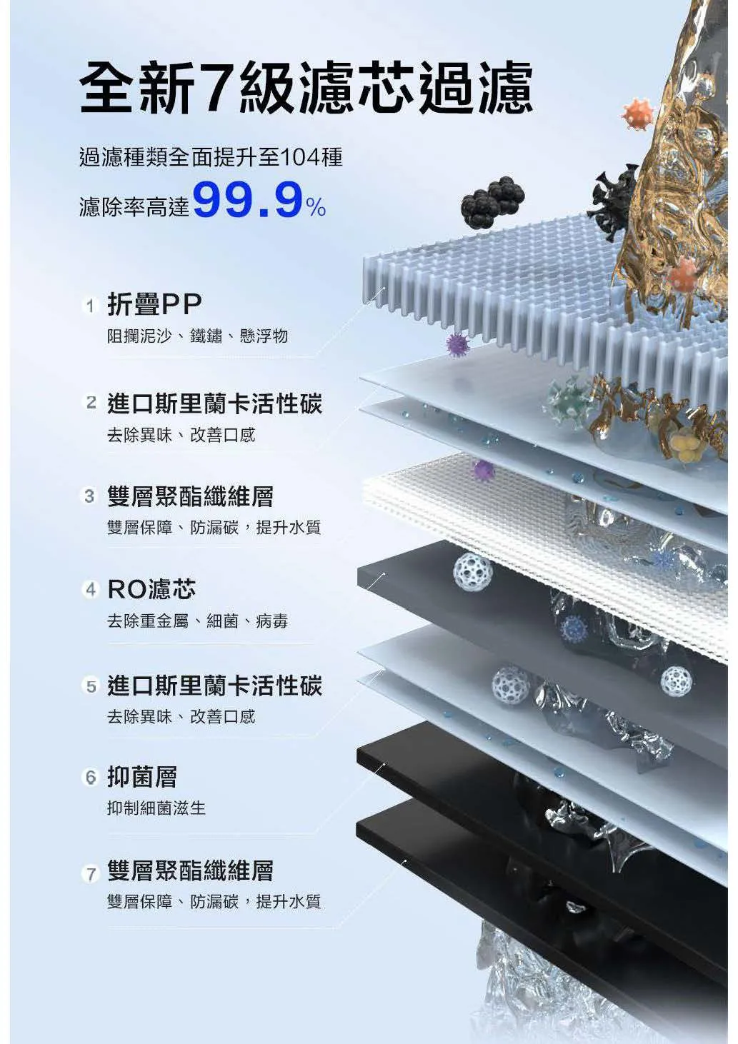 • 長效RO膜濾芯:10頁卷膜製技術,3年長效隨時享受潔淨好水