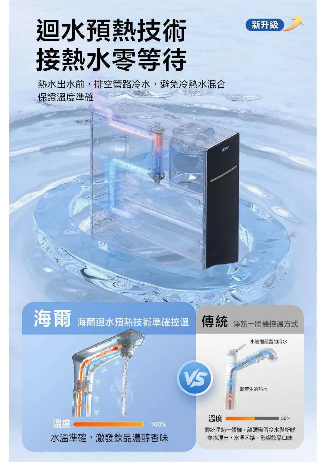 • 迴水預熱技術:排空管路冷水,避免冷熱水混合
