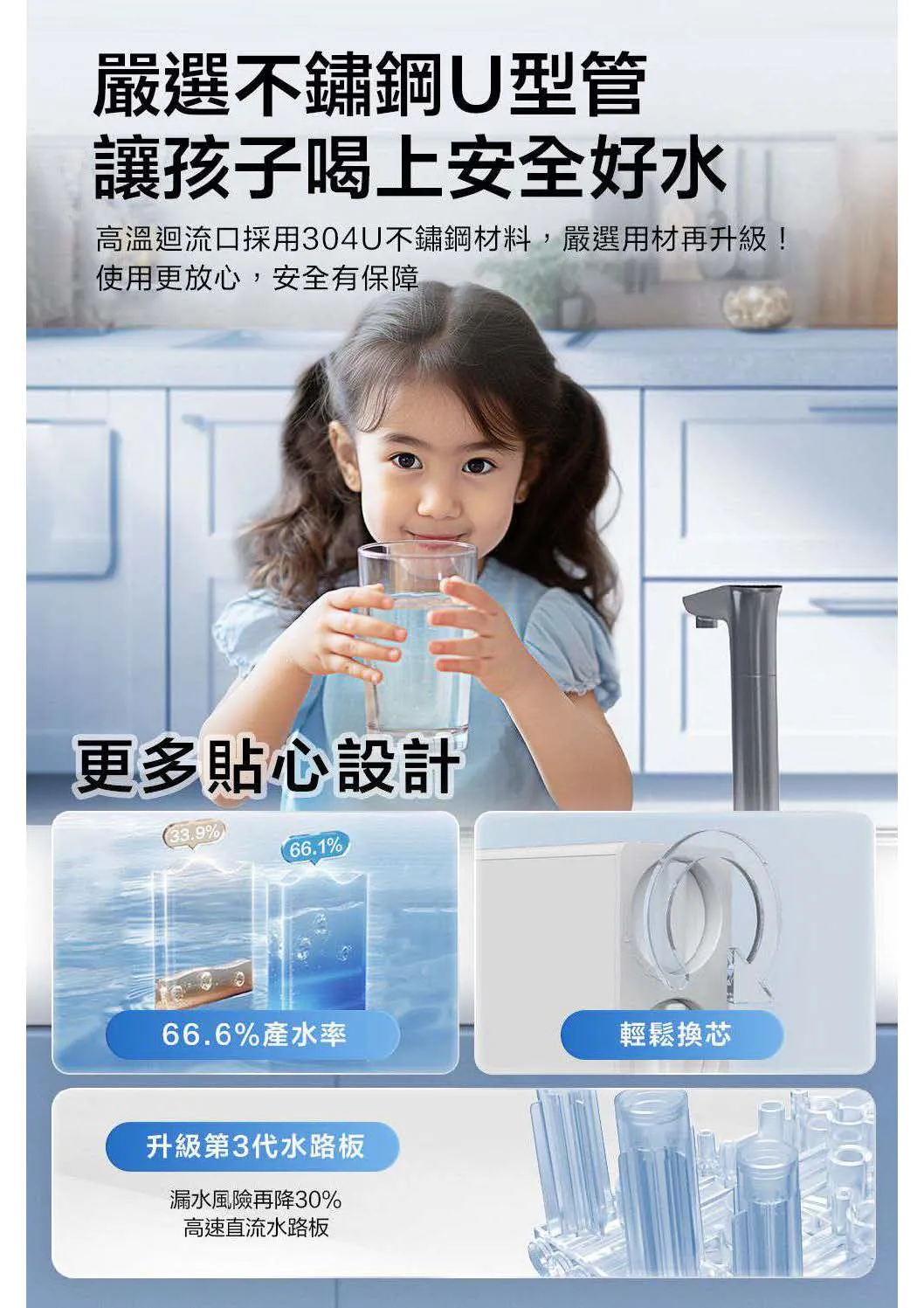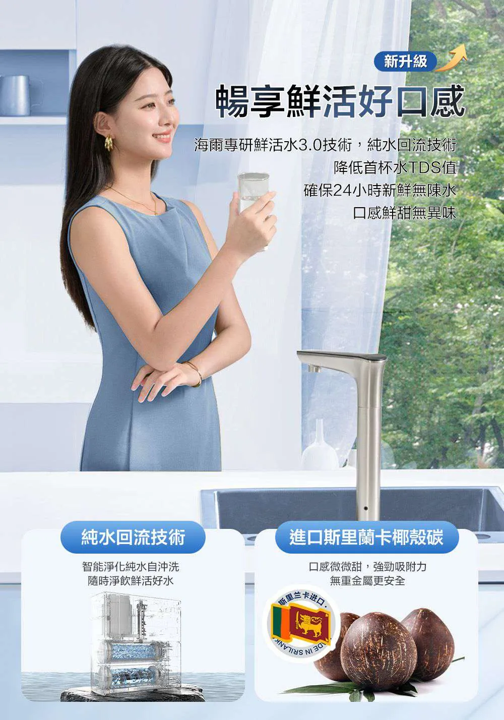 • 升級煥鮮水科技3.0技術:降低首杯TDS值,全時段供應純淨鮮活水