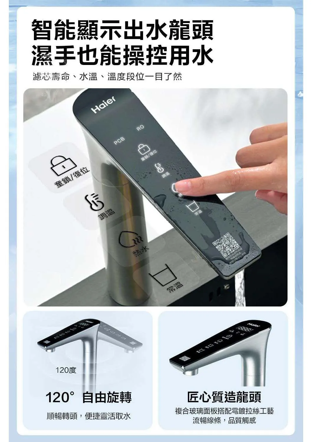• 智能顯示龍頭:調溫、濾芯壽命一目了然,濕手也能操控
