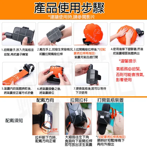 ⚠️內置液態二氧化碳,發生緊急情況時 只需輕輕一撥2-3秒即可充滿氣囊更快,更安全