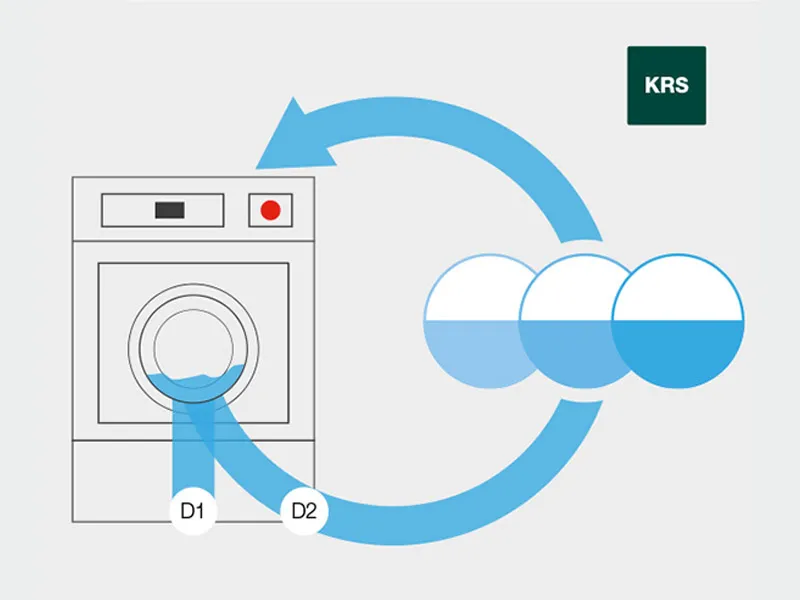 透過水路再利用機制,提高水資源使用效率,讓商用洗衣場可大幅降低用水成本並達到節能效果。