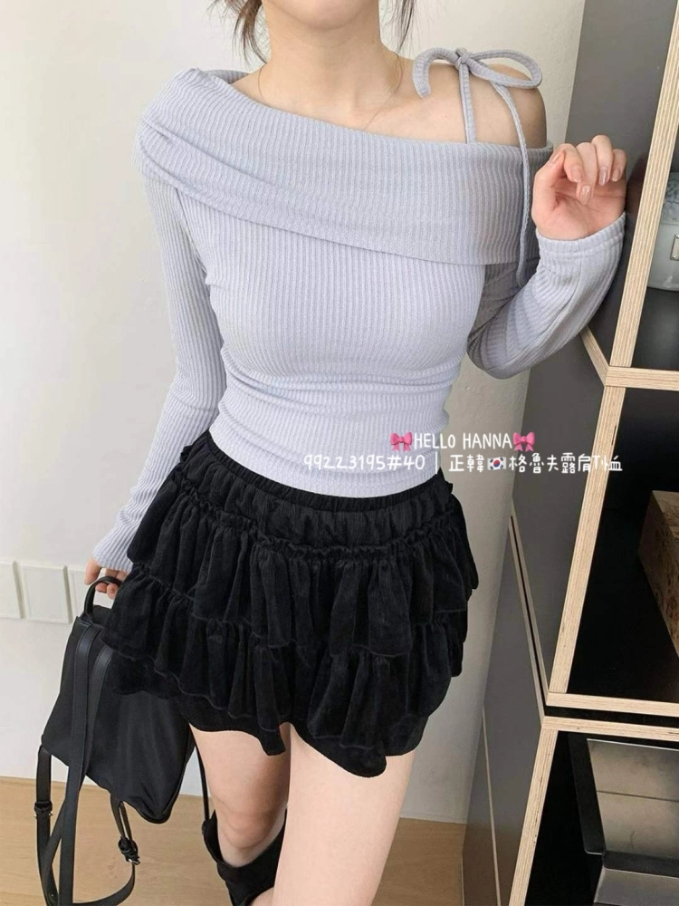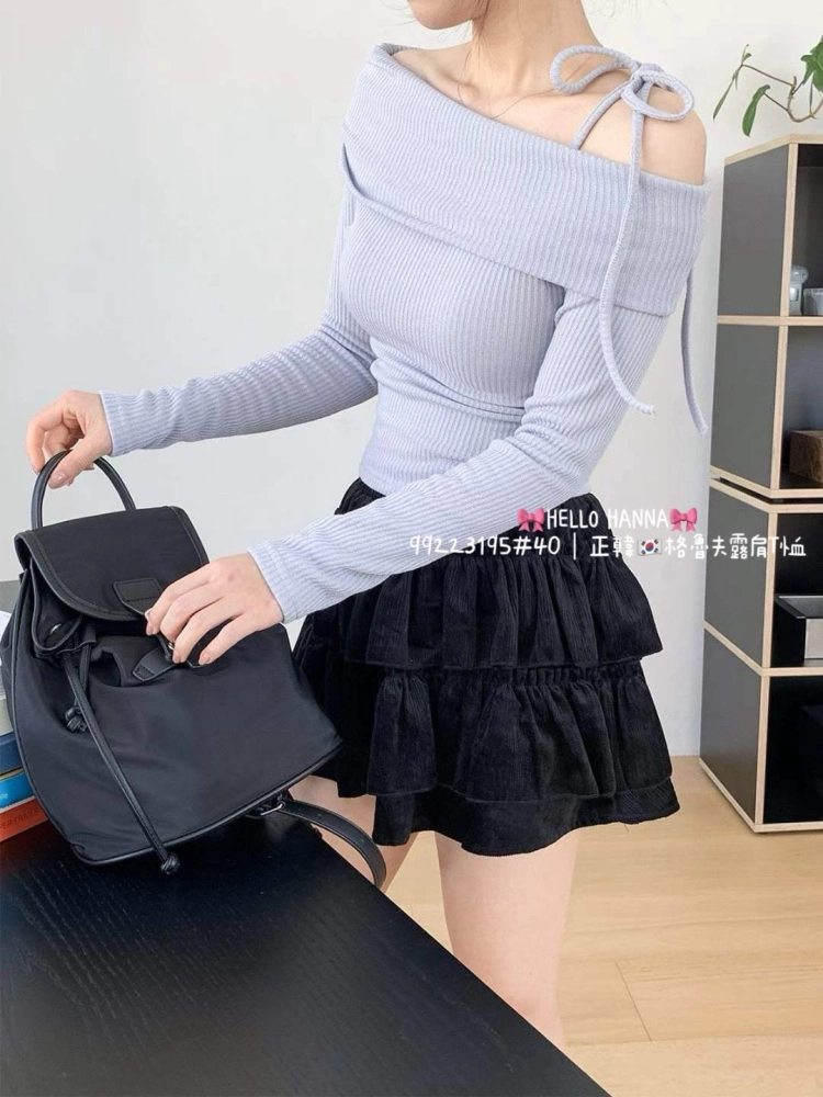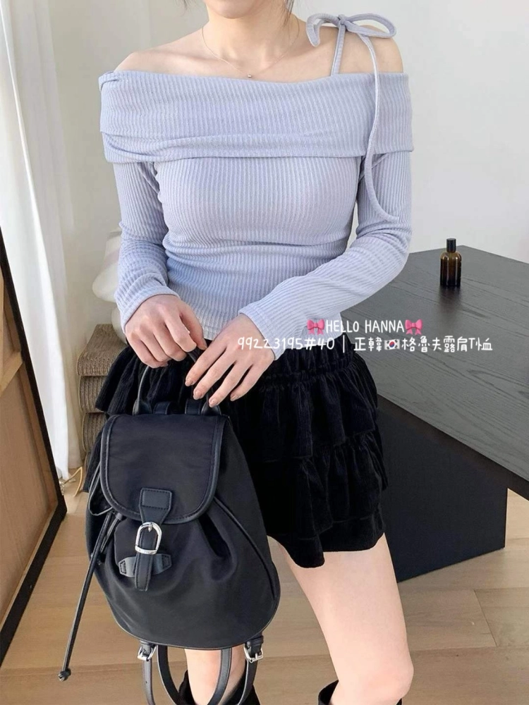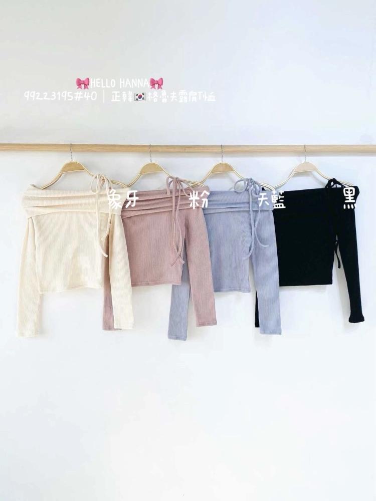 • 正韓格魯夫露肩T恤