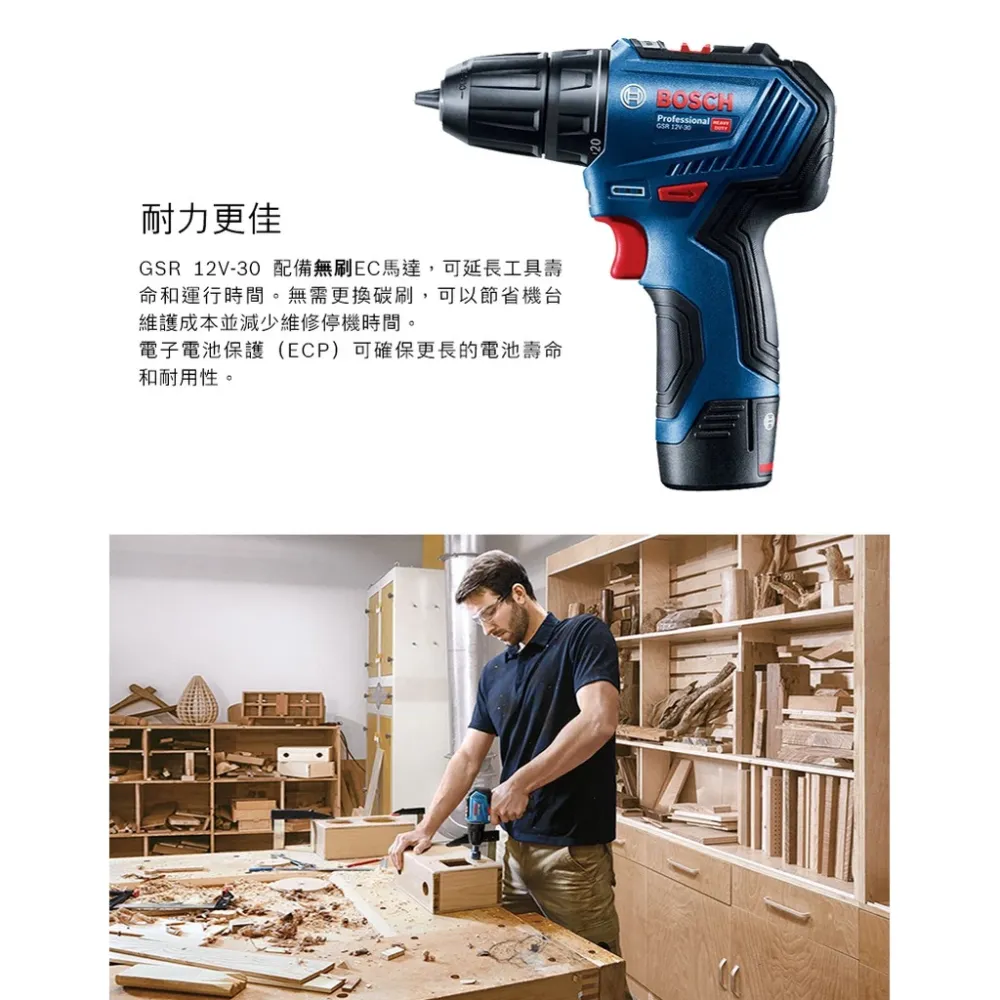 商品博世 BOSCH GSB 12V-30 12V無刷震動電鑽(工具箱)