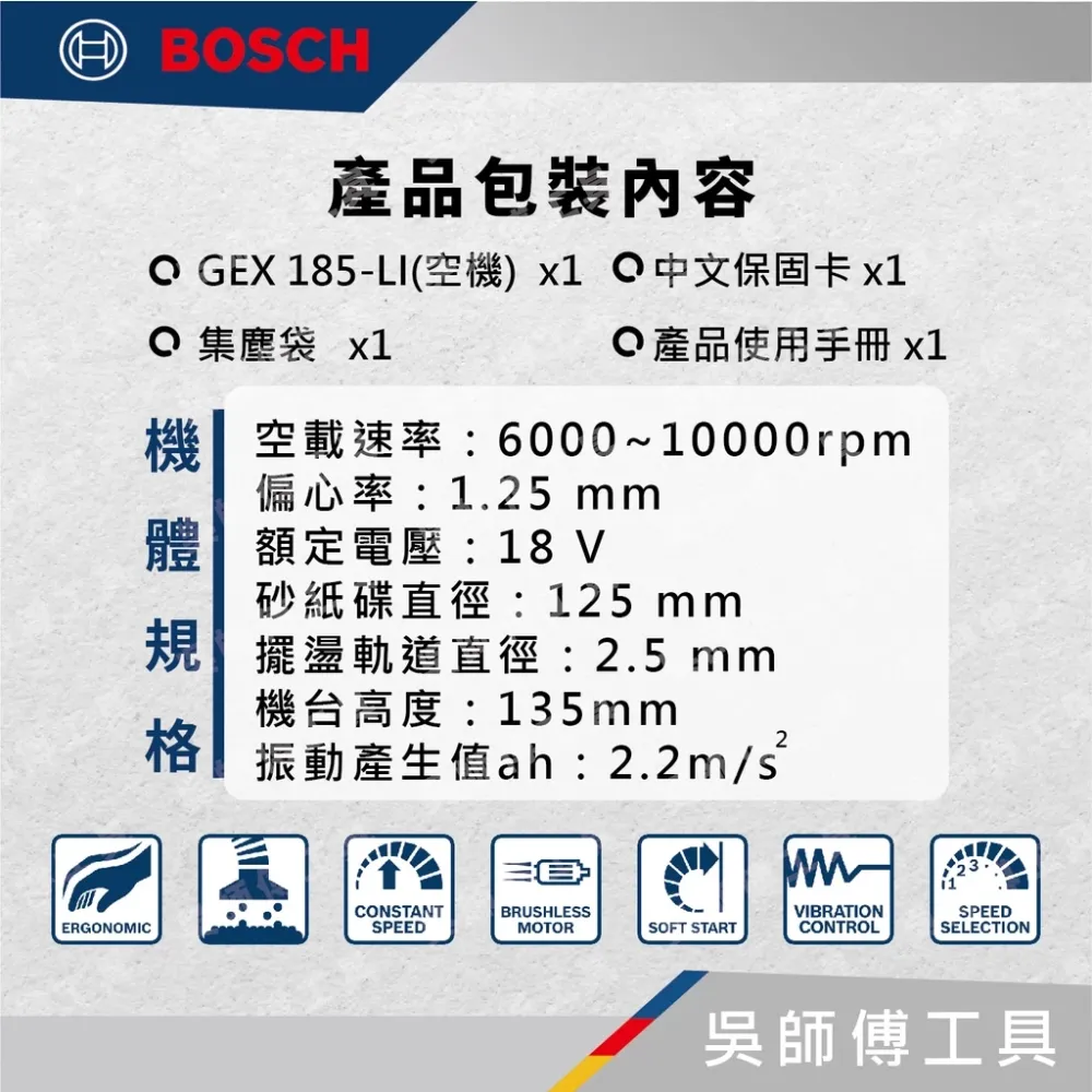 【GEX 185-LI】18V無刷五英寸圓盤砂紙機