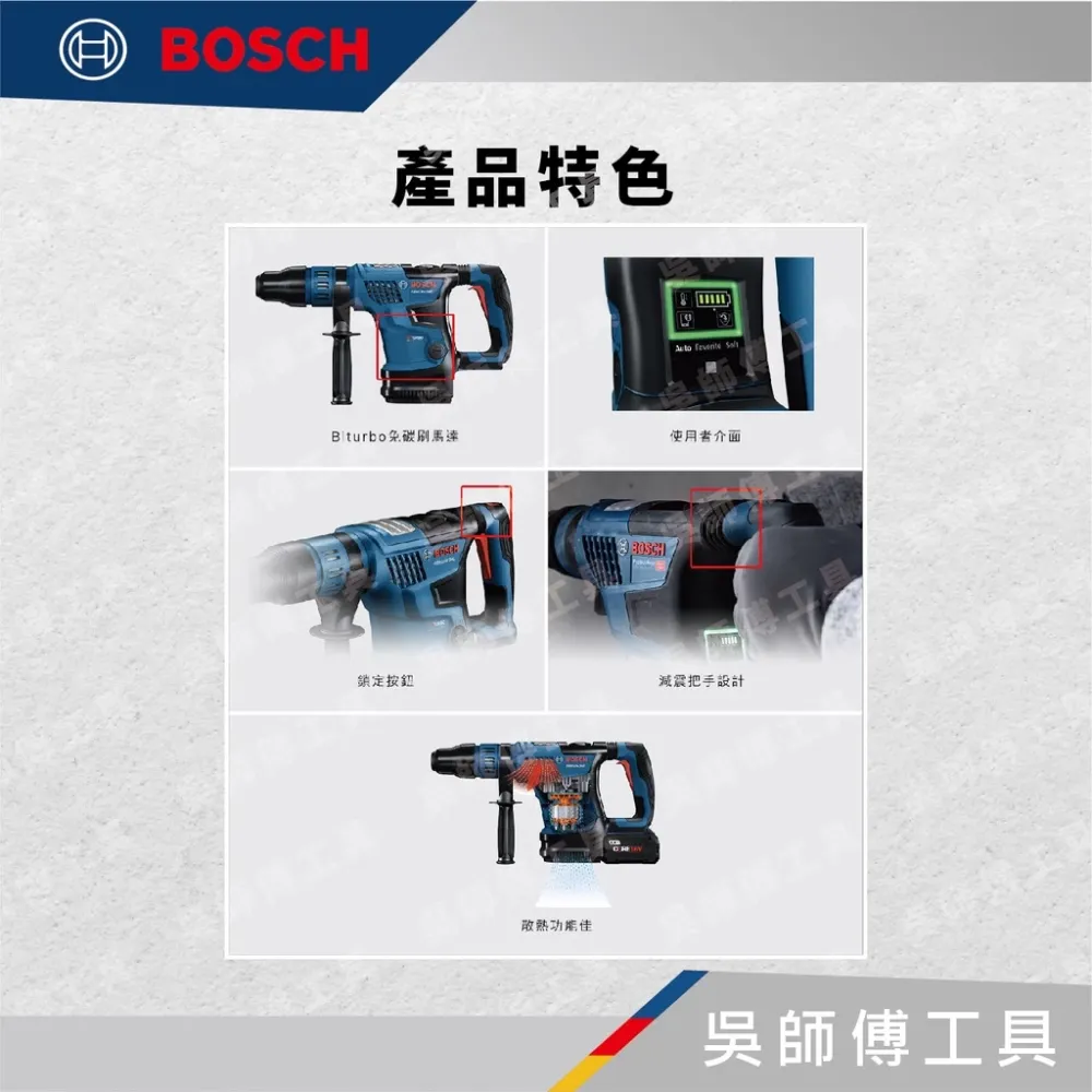 ●出色的精巧外型和強大功率 – 博世GBH 18V-36 C Professional充電式SDS max五溝鎚鑽