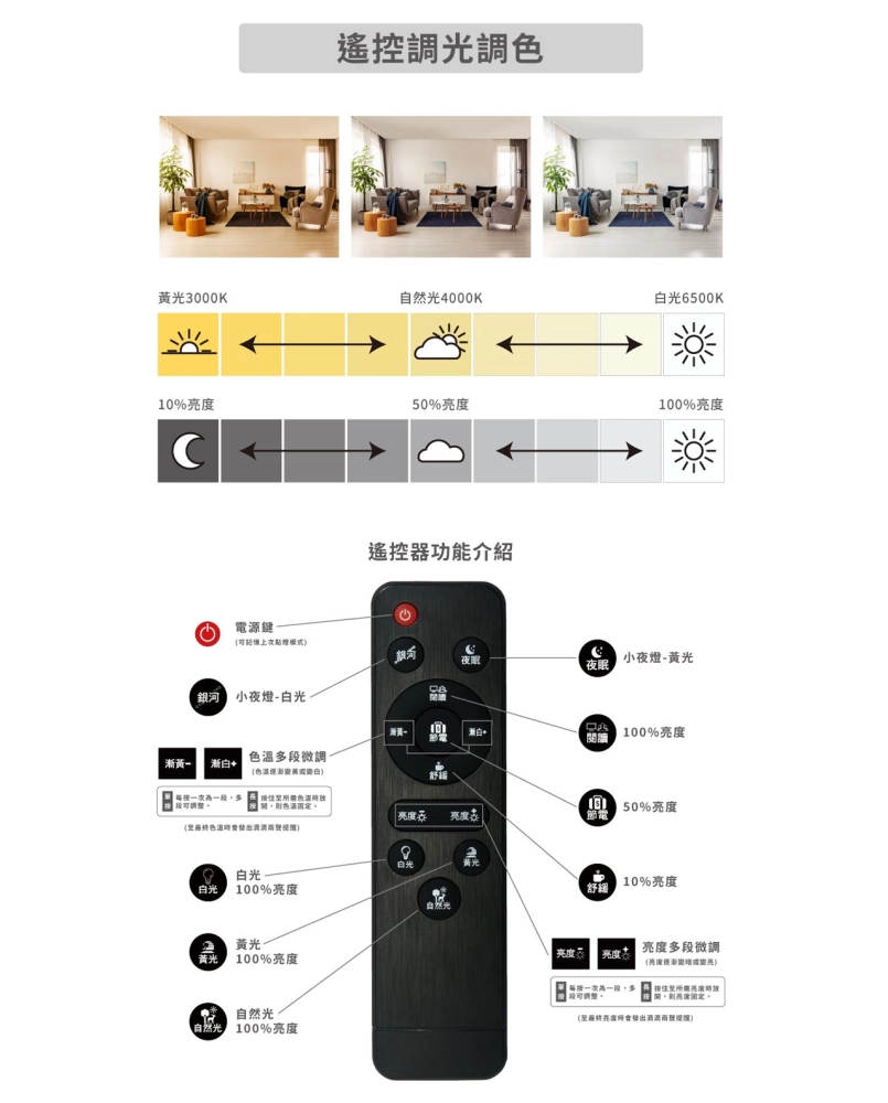 商品億光30W / 50W 星晴 LED 調光調色吸頂燈 附遙控器 PE851 / PE852