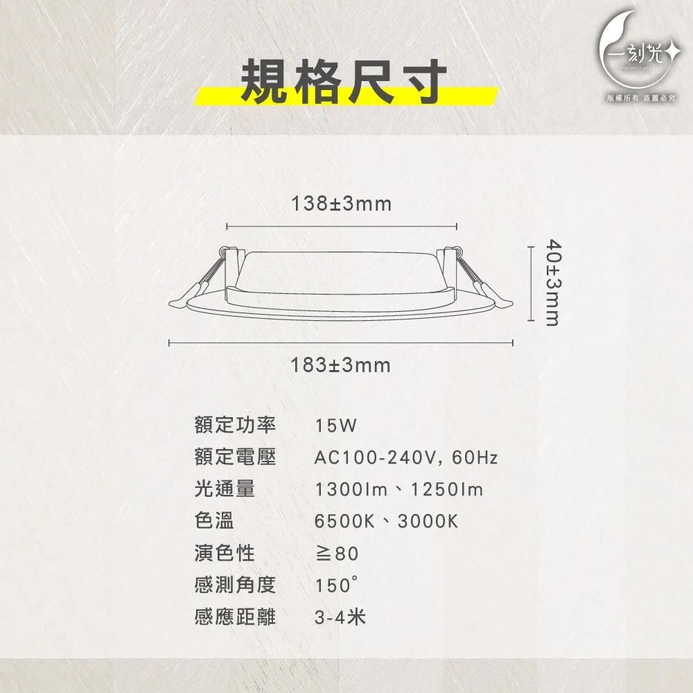 #一刻光 #LED感應崁燈 #15W崁燈 #15W感應燈 #保固1年 #雷達感應崁燈 #感應燈 #LED感應燈 #LED崁燈 #崁燈 #待機全滅 #待機20% #附快速接頭 #簡易安裝 #居家照明 #商業照明